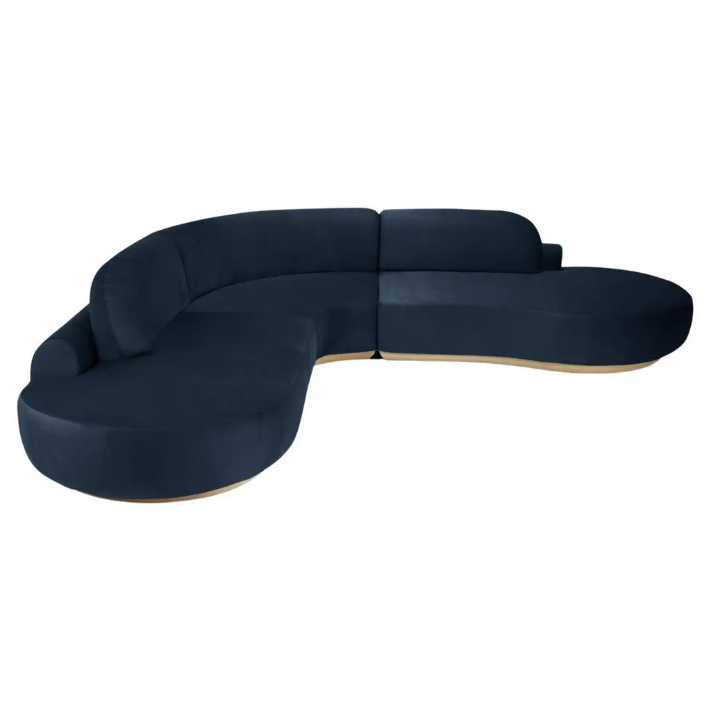 Naked Curved Sectional Sofa, 3 Piece With Natural Oak And Smooth 72