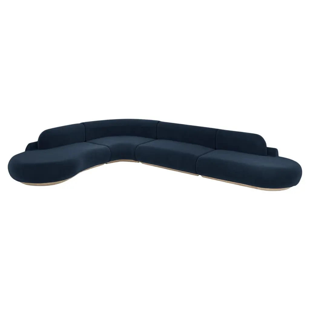 The Naked Sectional Sofa is a modular sofa with inviting curves and a comfortable seating. Handmade with a solid wood base. The Naked Sectional Sofa is available in a number of different materials, finishes and combinations.MaterialTop : velvet fabric, boucle fabricBase : solid wood, choose from solid wood colorsBeech Ash-056-5CornDimensionsAvailable in several combinationsNaked Sofa Single : W 96” x D 52” x H 31” - Seat height 15”Naked Sectional Sofa 2 Piece : W 130” x D 52” x H 31” - Seat height 15”Naked Sectional Sofa 2 Piece Long : W 146” x D 52” x H 31” - Seat height 15”Naked Sectional Sofa 3 Piece Curved : W 122” x D 130” x H 31” x L 93.5” - Seat height 15”Naked Sectional Sofa 4 Piece : W 130” x D 178” x H 31” - Seat height 15”Pictured inParis Mouse, Natural Beech.