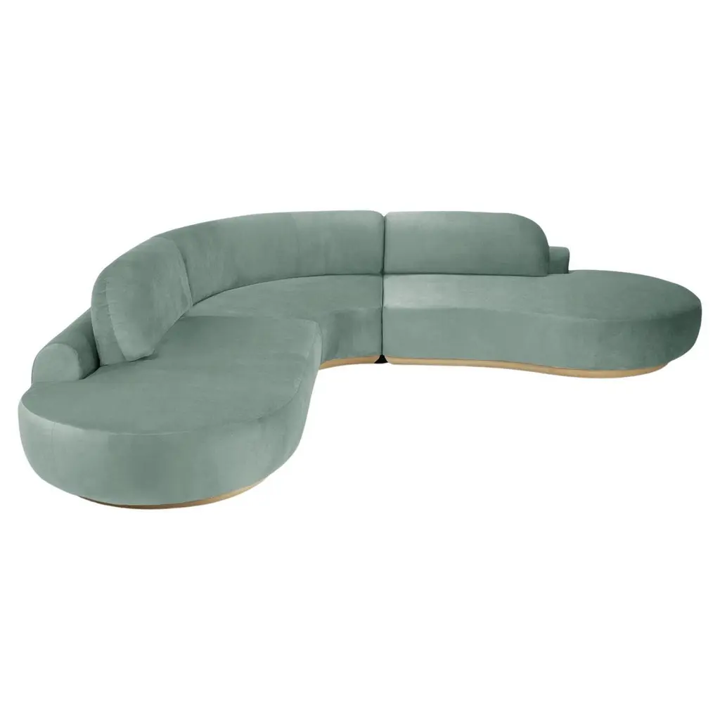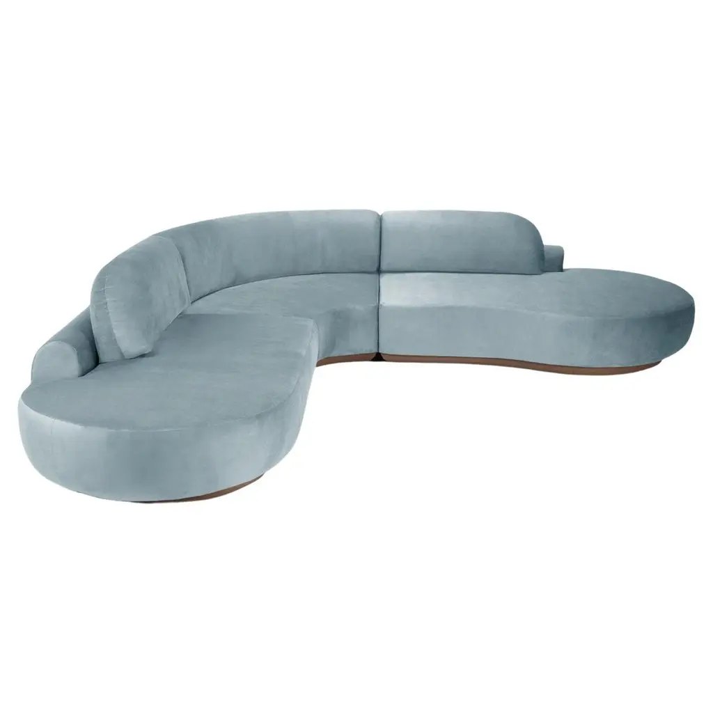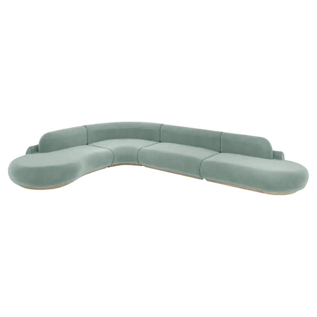 The Naked Sectional Sofa is a modular sofa with inviting curves and a comfortable seating. Handmade with a solid wood base. The Naked Sectional Sofa is available in a number of different materials, finishes and combinations.MaterialTop : velvet fabric, boucle fabricBase : solid wood, choose from solid wood colorsWood: Beech Ash-056-1Fabric: Paris SafiraDimensionsAvailable in several combinationsNaked Sofa Single : W 96” x D 52” x H 31” - Seat height 15”Naked Sectional Sofa 2 Piece : W 130” x D 52” x H 31” - Seat height 15”Naked Sectional Sofa 2 Piece Long : W 146” x D 52” x H 31” - Seat height 15”Naked Sectional Sofa 3 Piece Curved : W 122” x D 130” x H 31” x L 93.5” - Seat height 15”Naked Sectional Sofa 4 Piece : W 130” x D 178” x H 31” - Seat height 15”Pictured inParis Mouse, Natural Beech.