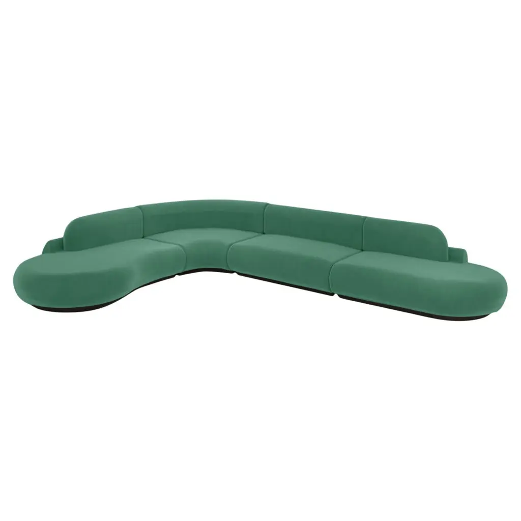 The naked sectional sofa is a modular sofa with inviting curves and a comfortable seating. Handmade with a solid wood base. The naked sectional sofa is available in a number of different materials, finishes and combinations.MaterialTop : velvet fabric, boucle fabricBase : solid wood, choose from solid wood colorsWood: Beech Ash-056-5Fabric: Smooth 60DimensionsAvailable in several combinationsNaked sofa single : W 96” x D 52” x H 31” - Seat height 15”Naked sectional sofa 2 piece : W 130” x D 52” x H 31” - Seat height 15”Naked sectional sofa 2 piece Long : W 146” x D 52” x H 31” - Seat height 15”Naked sectional sofa 3 piece Curved : W 122” x D 130” x H 31” x L 93.5” - Seat height 15”Naked sectional sofa 4 piece : W 130” x D 178” x H 31” - Seat height 15”Pictured inParis Mouse, natural beech.