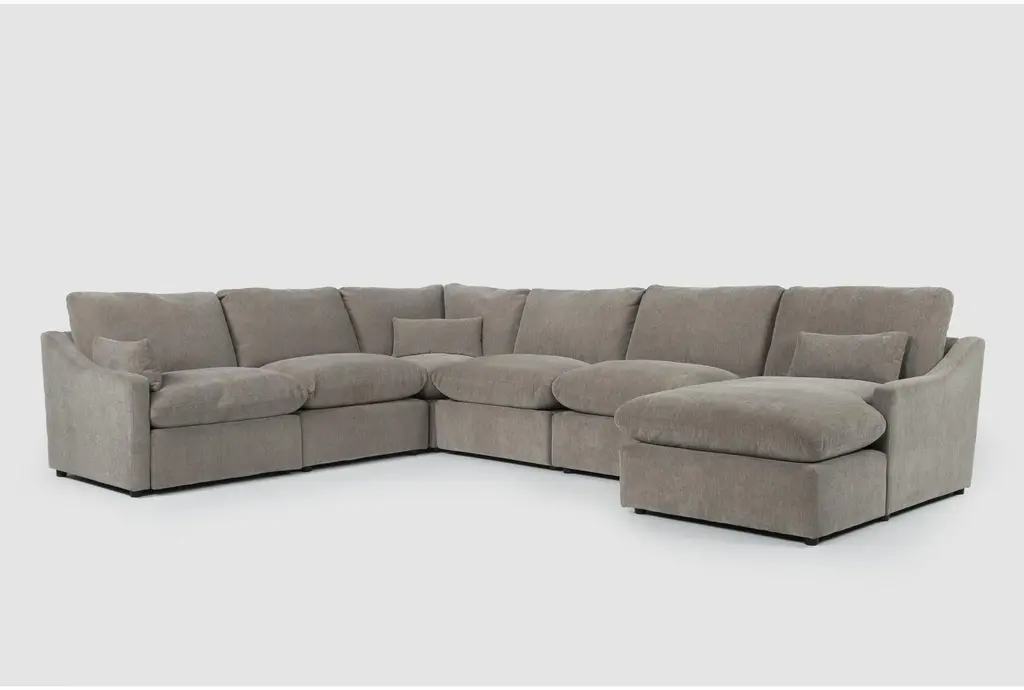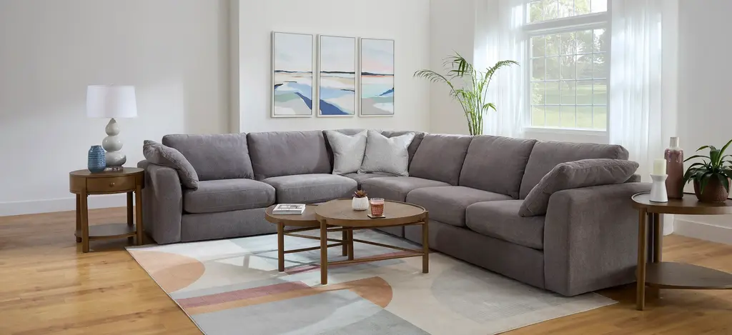 Family and friends will happily gather for hours on the big, comfy Nappily sectional. The cozy gray boucle is just the beginning of a seating experience that includes extra pillowy cushions, along with gently rounded arms and edges for an easy vibe that's ultra-inviting. Plus, all the cushions are loose and removable, so it's easy to vacuum up inevitable crumbs.