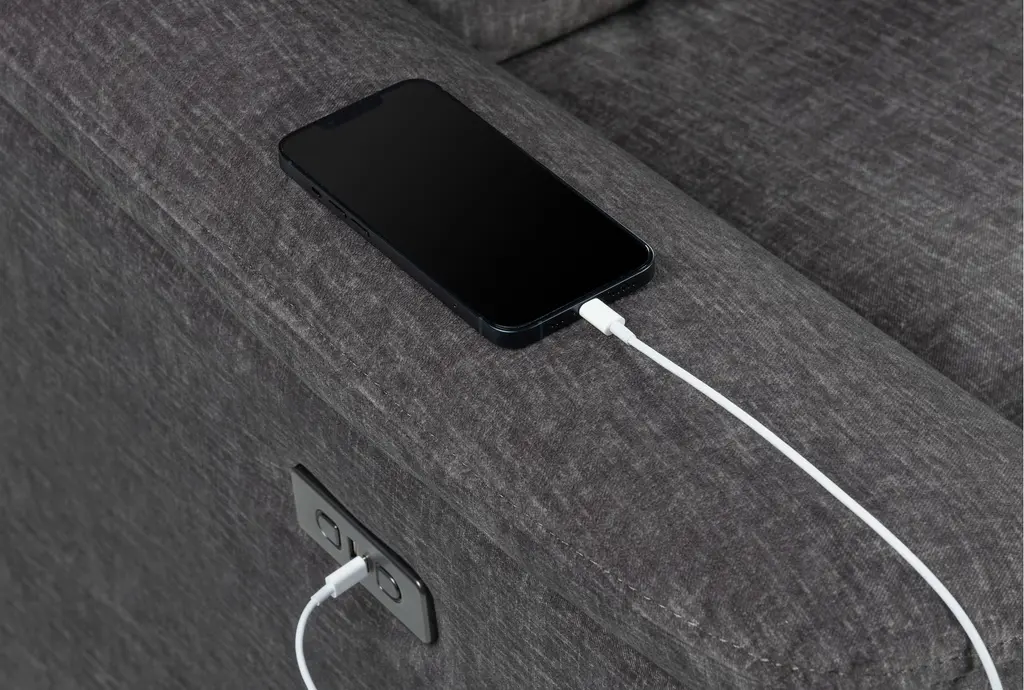Our Nash power reclining modular sectional is your new comfort zone destination. You'll love the space-saving, wall-hugging designs and flexible modular components. From solid hardwood frames, to high-density foam seating, to no-sag suspension, every element offers exceptional quality for the most supportive, relaxing experience. Power reclining ensures smooth motion at the press of a button, so you can get in prime positions. USB charging is the icing on top.