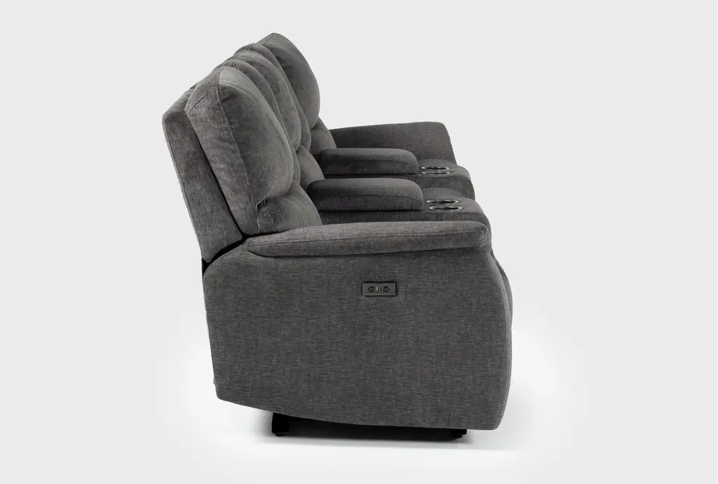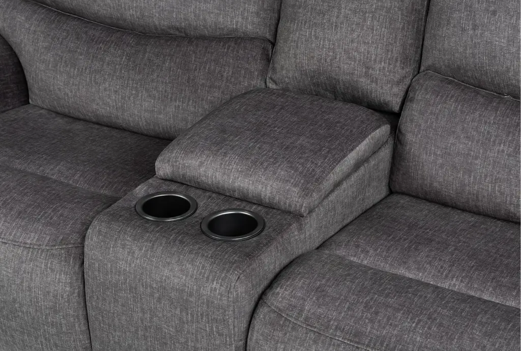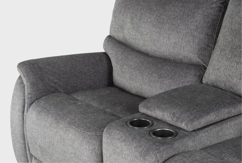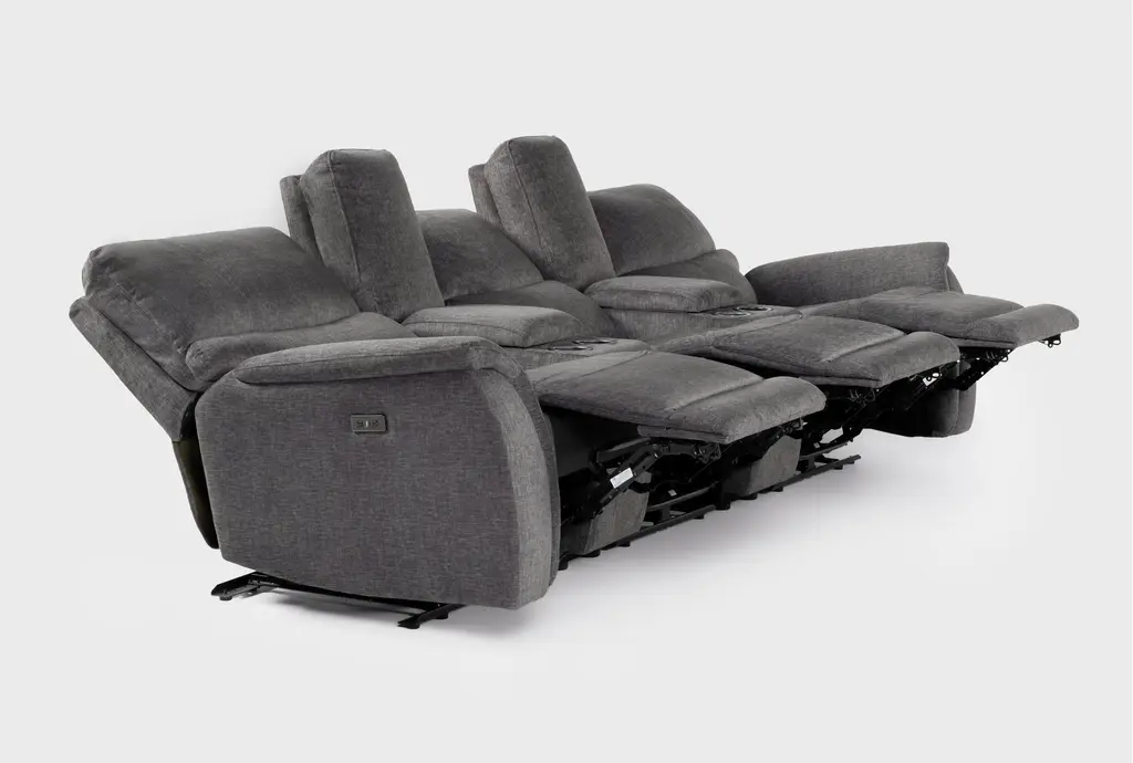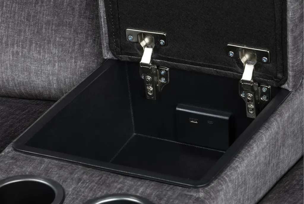 Experience ultimate comfort and style with the Nash 5 Piece 114" Power Reclining Modular Theater Sectional. This casual sectional is perfect for any living room, offering a sleek design in a sophisticated gunmetal color. The 100% polyester fabric ensures durability and a soft touch for long-lasting enjoyment.