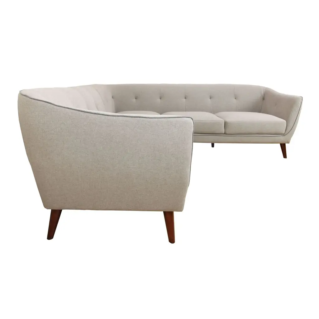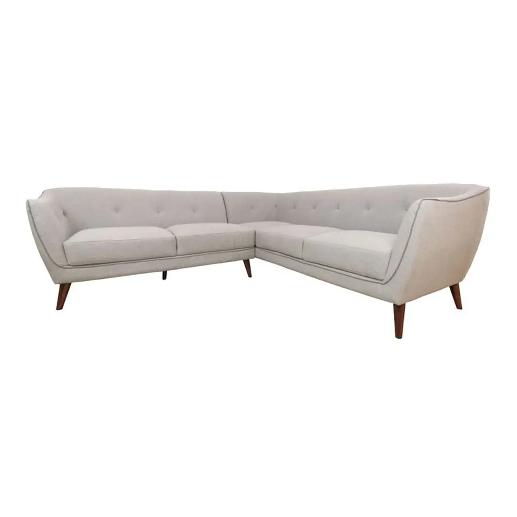 With a subtly curved silhouette and striking splayed legs, our Nelson two-piece sofa exudes svelte mid-century style. Featuring a solid hardwood frame, supportive seats and a roomy L-shape, this sectional stunner offers ample seating for your living room so you can lounge in comfort and style. The Nelson is available in two distinct looks: a concrete-gray version with walnut legs, and textural black tweed with ash-gray legs.