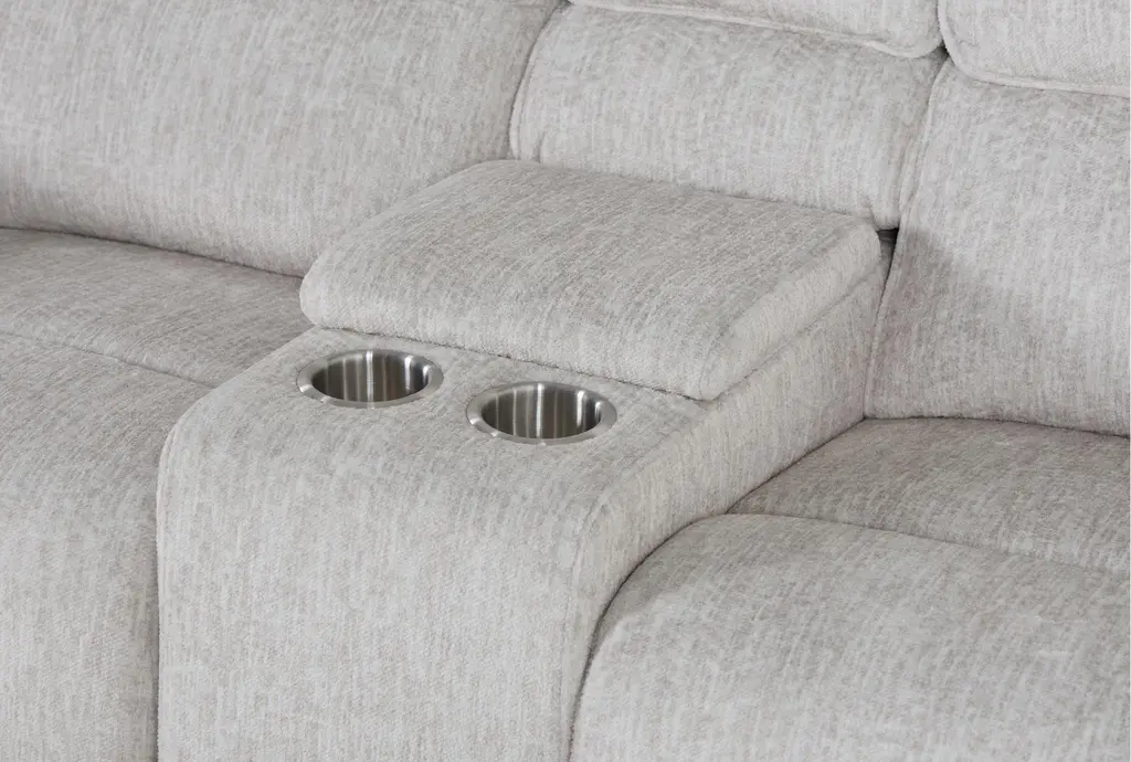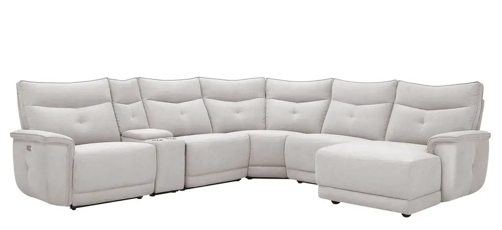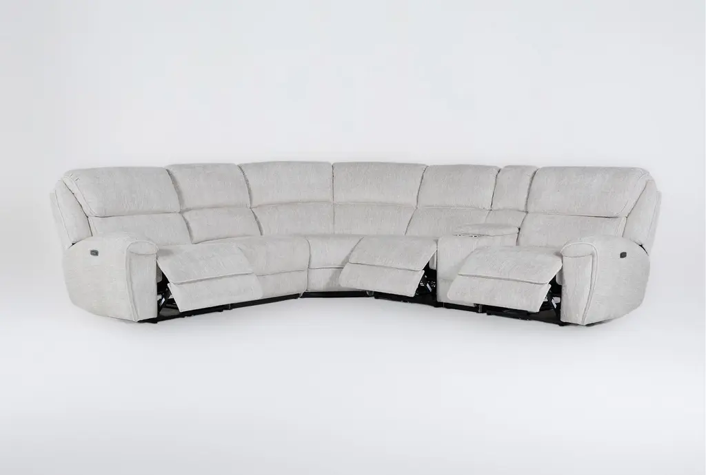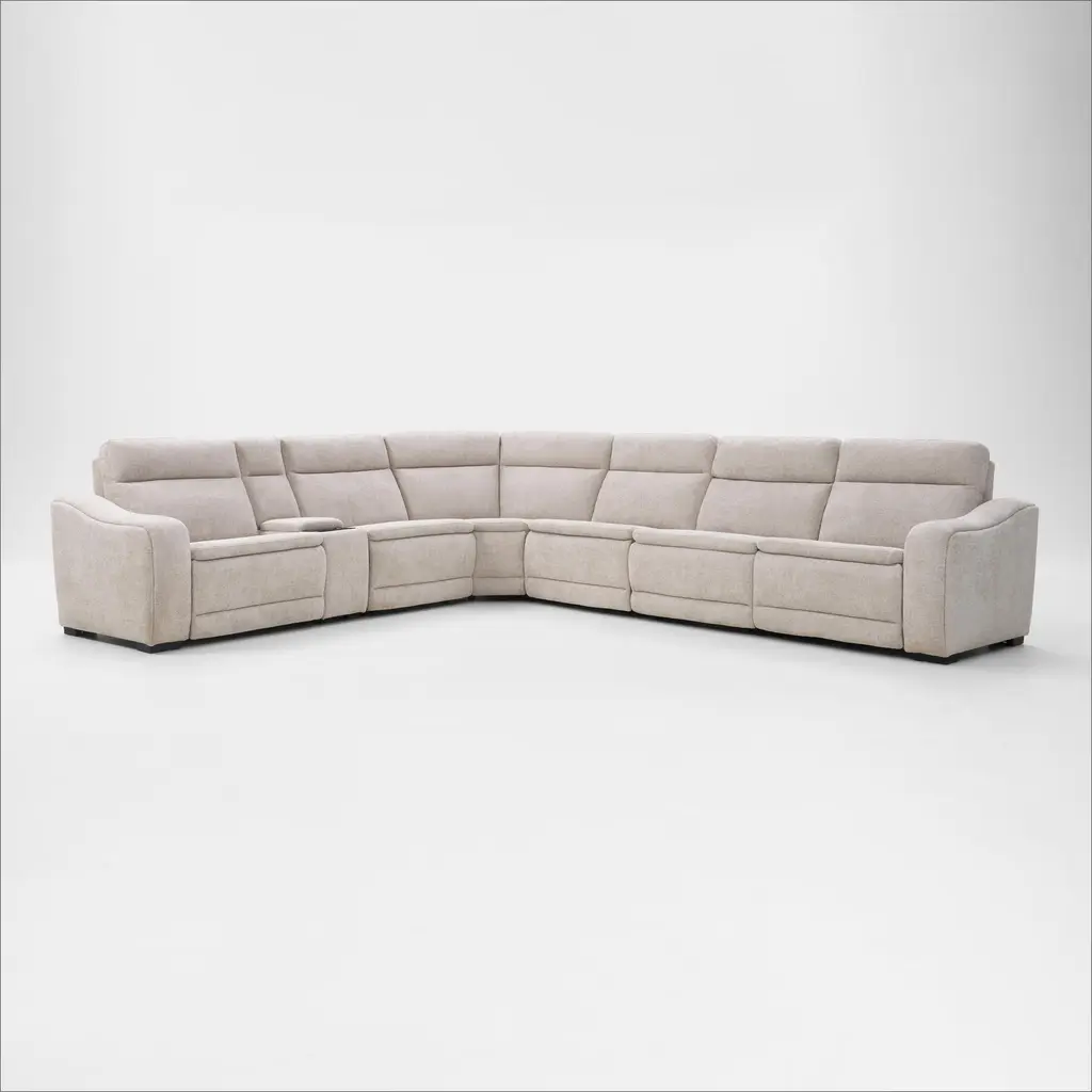 Neo Beige Ivory 6 Piece Power Reclining Modular Sectional With Console Power Headrest & Usb | Reversible | Adjustable Headrests