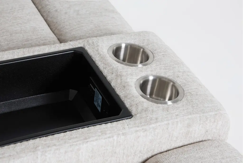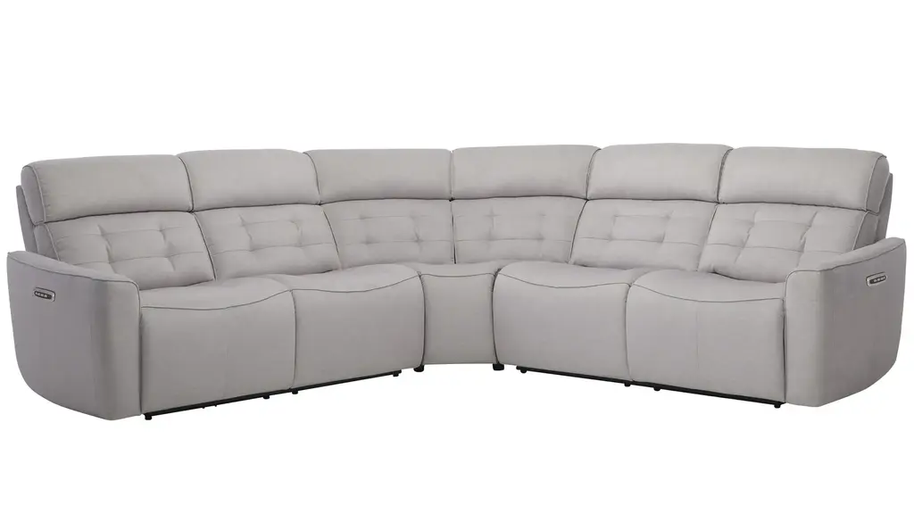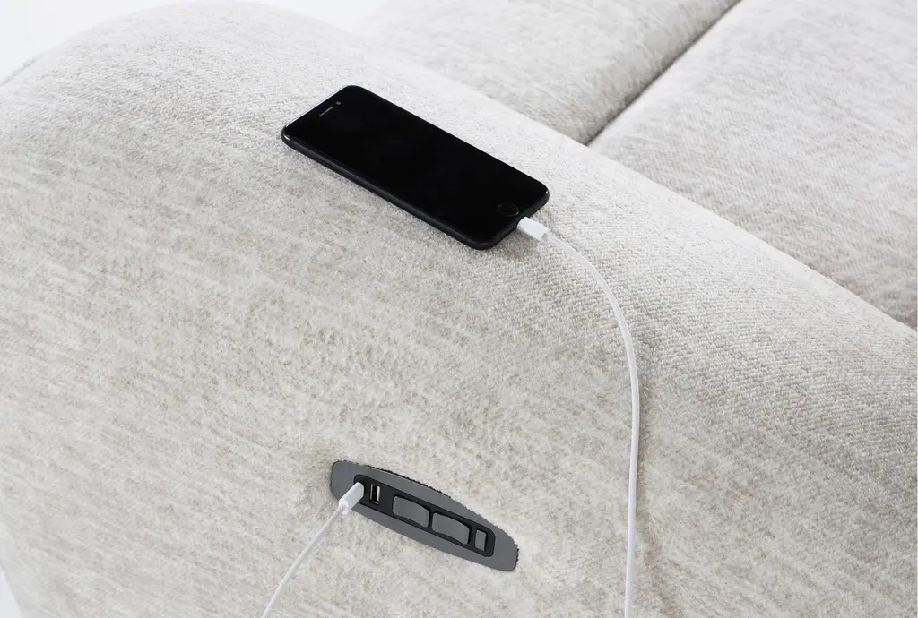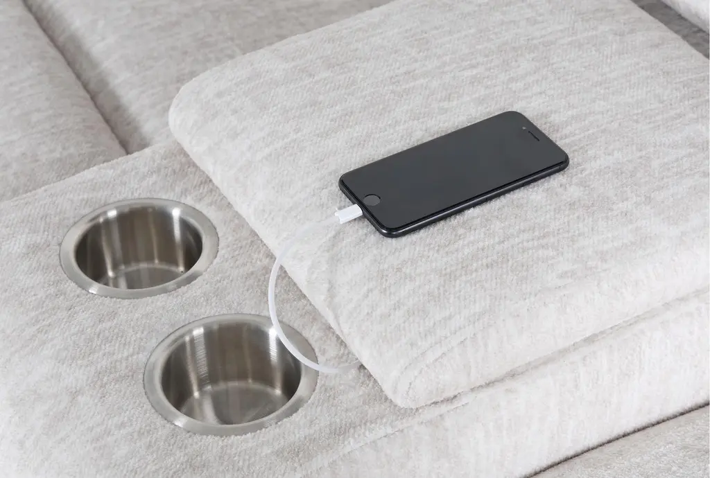 Experience ultimate comfort and functionality with the Neo Beige Ivory 6 Piece Power Reclining Modular Sectional. This sectional is designed to enhance your living room with its soft beige fabric and versatile configuration options. The power headrest and USB charging port add modern convenience to this stylish piece.