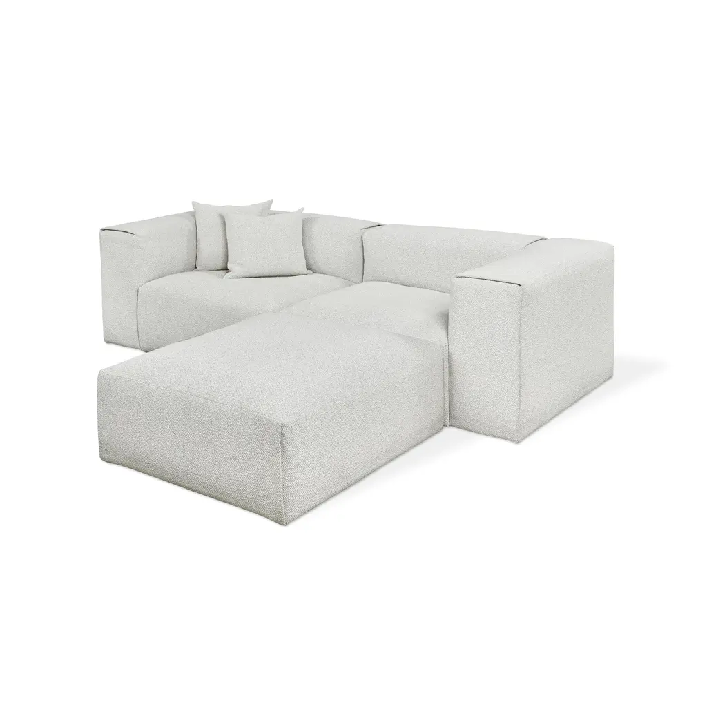Indulge in effortless luxury with our Nest Modular 3-piece Sectional from Gus. Sink into plush comfort and a sophisticated shape, perfect for any lifestyle. Crafted with premium feather fill and versatile bouclé fabric, each piece can be arranged to suit your lifestyle. Perfectly tailored and welcoming, this sectional is a fantastic option for family rooms, game rooms, and entertainment spaces alike. Highlights