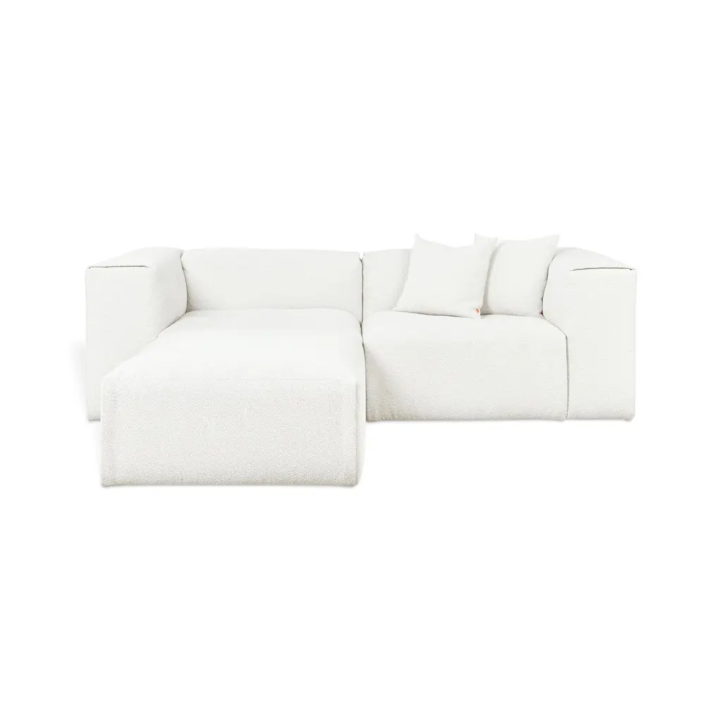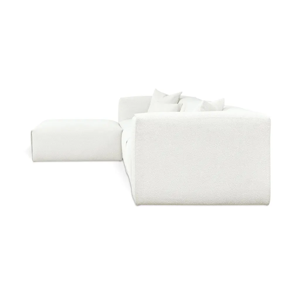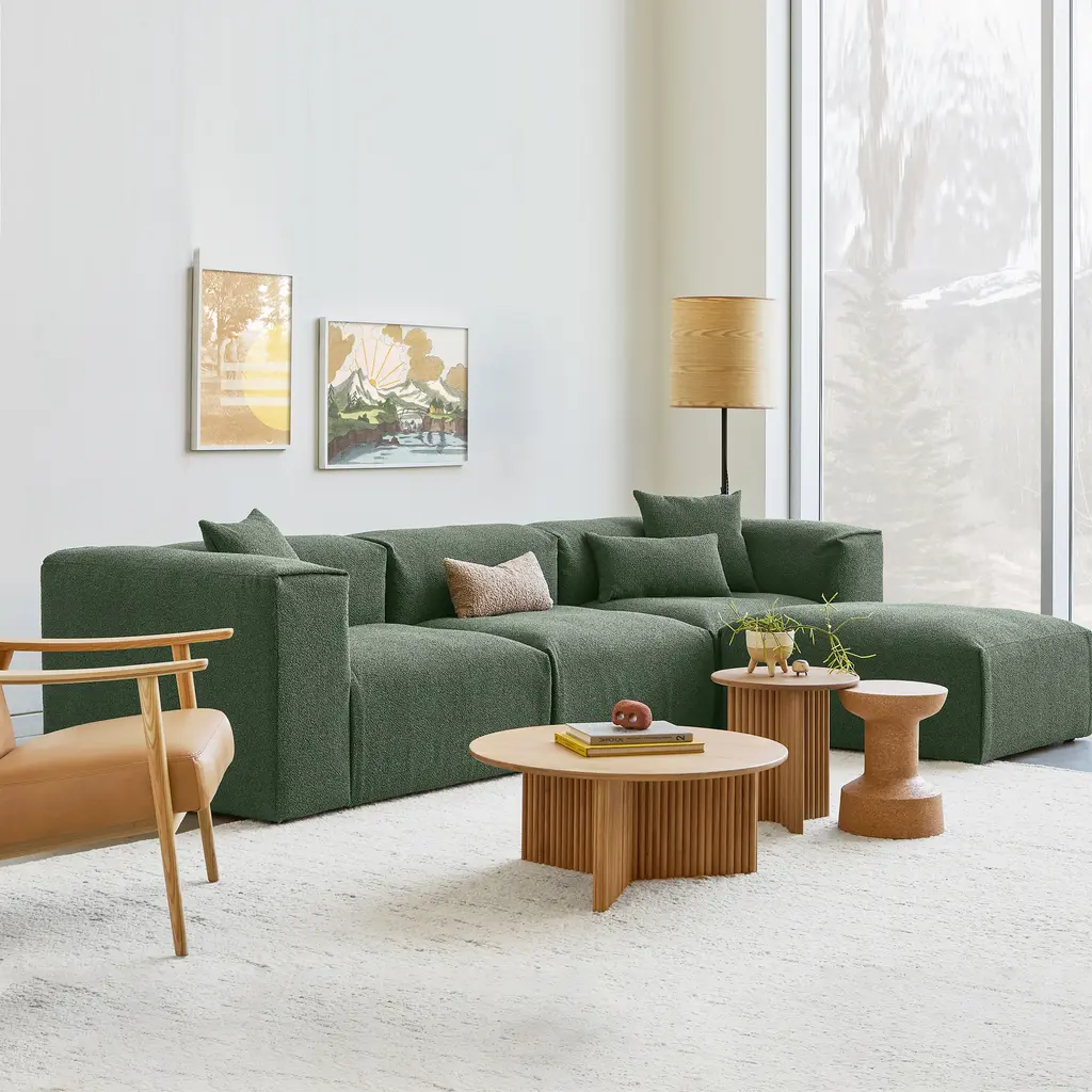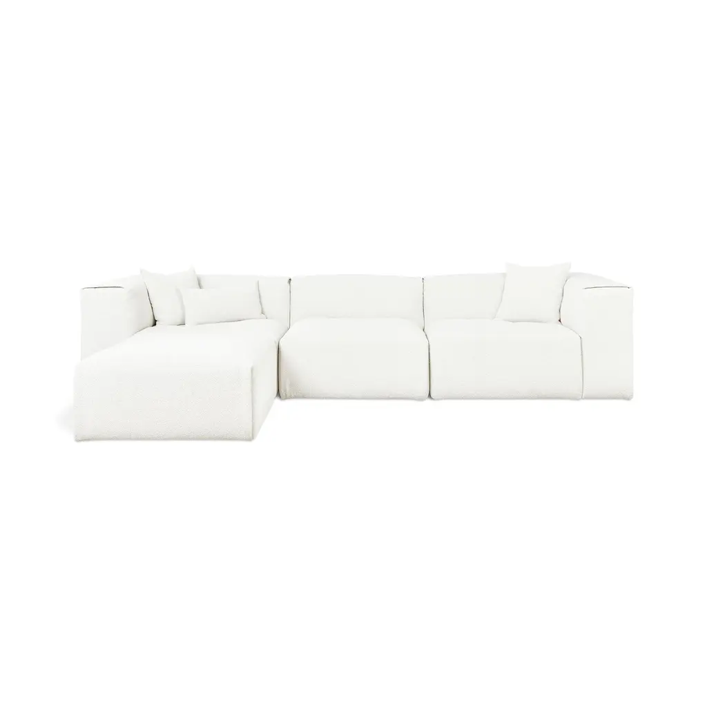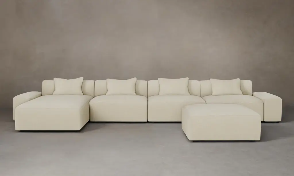 Indulge in the ultimate luxury lounging experience with the Nest Modular 4-piece Sectional from Gus. Featuring plush comfort, a sleek design, and endless configurations, this collection adapts to your evolving lifestyle. The premium feather fill and nubby bouclé fabric add a touch of sophistication, making it perfect for any setting, from a beach house to a boutique hotel lobby. Highlights