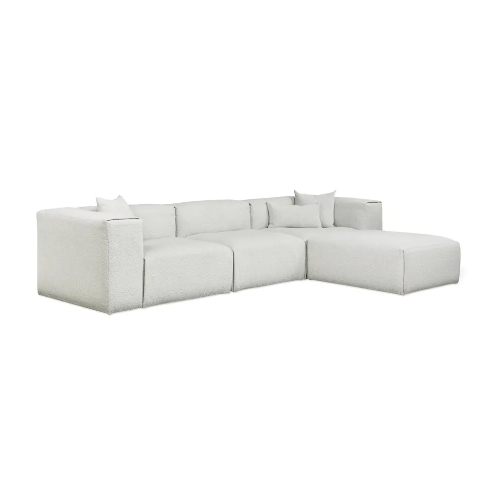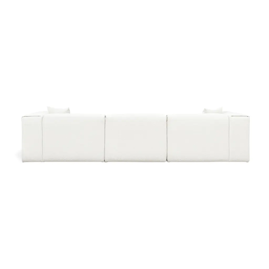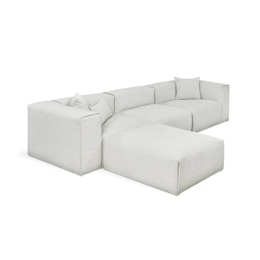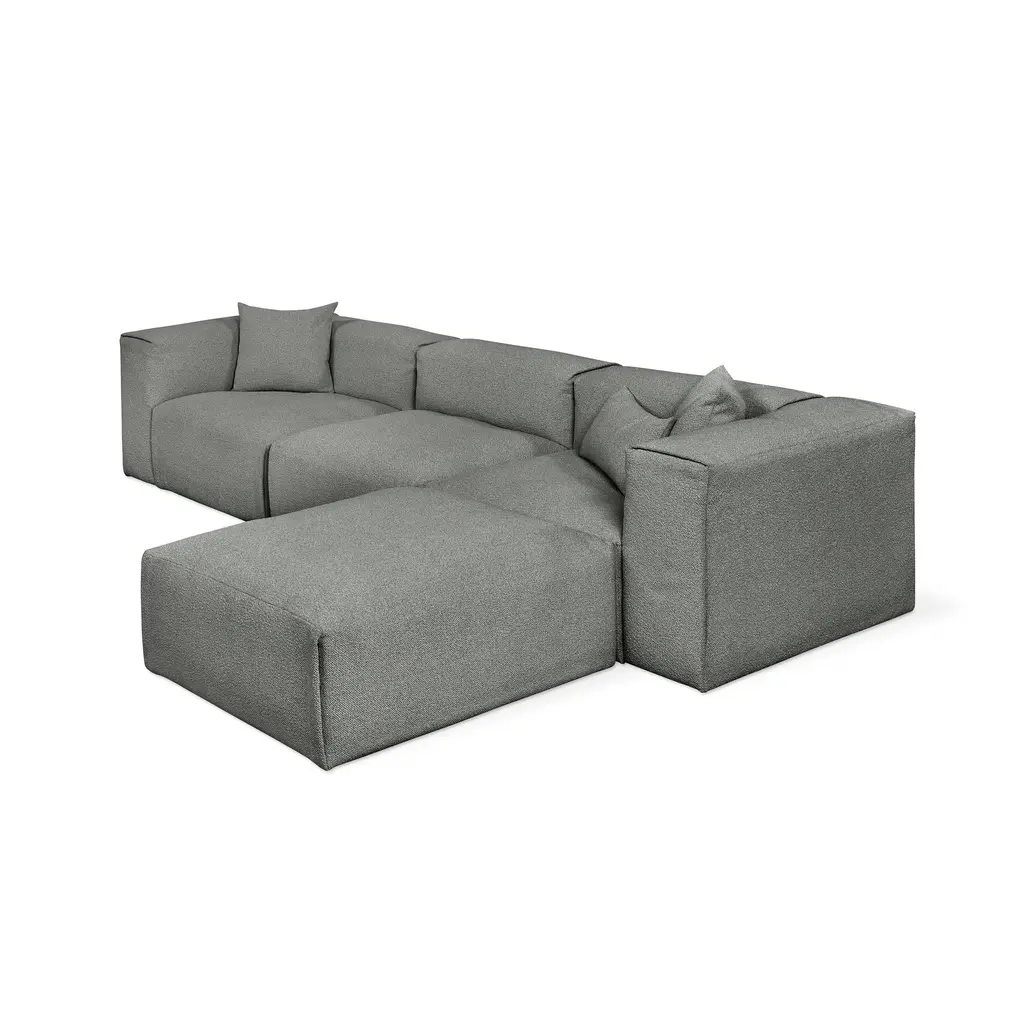 Indulge in the ultimate luxury lounging experience with the Nest Modular 4-piece Sectional from Gus. Featuring plush comfort, a sleek design, and endless configurations, this collection adapts to your evolving lifestyle. The premium feather fill and nubby bouclé fabric add a touch of sophistication, making it perfect for any setting, from a beach house to a boutique hotel lobby. Highlights