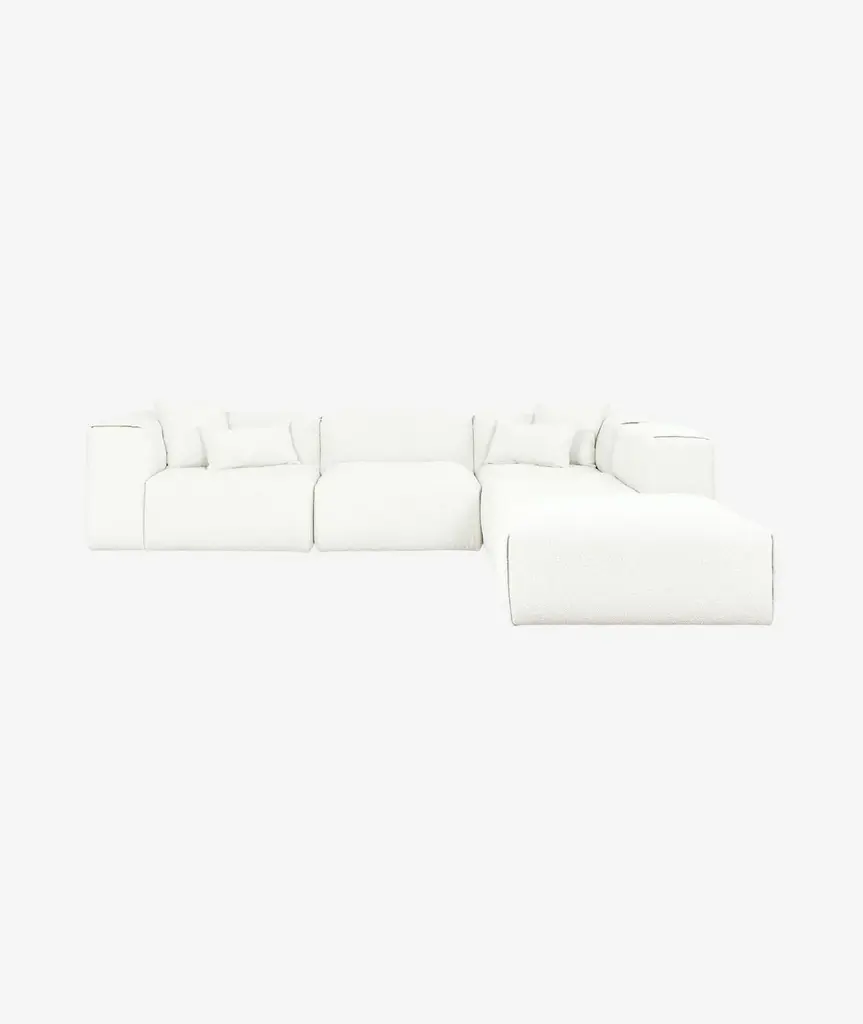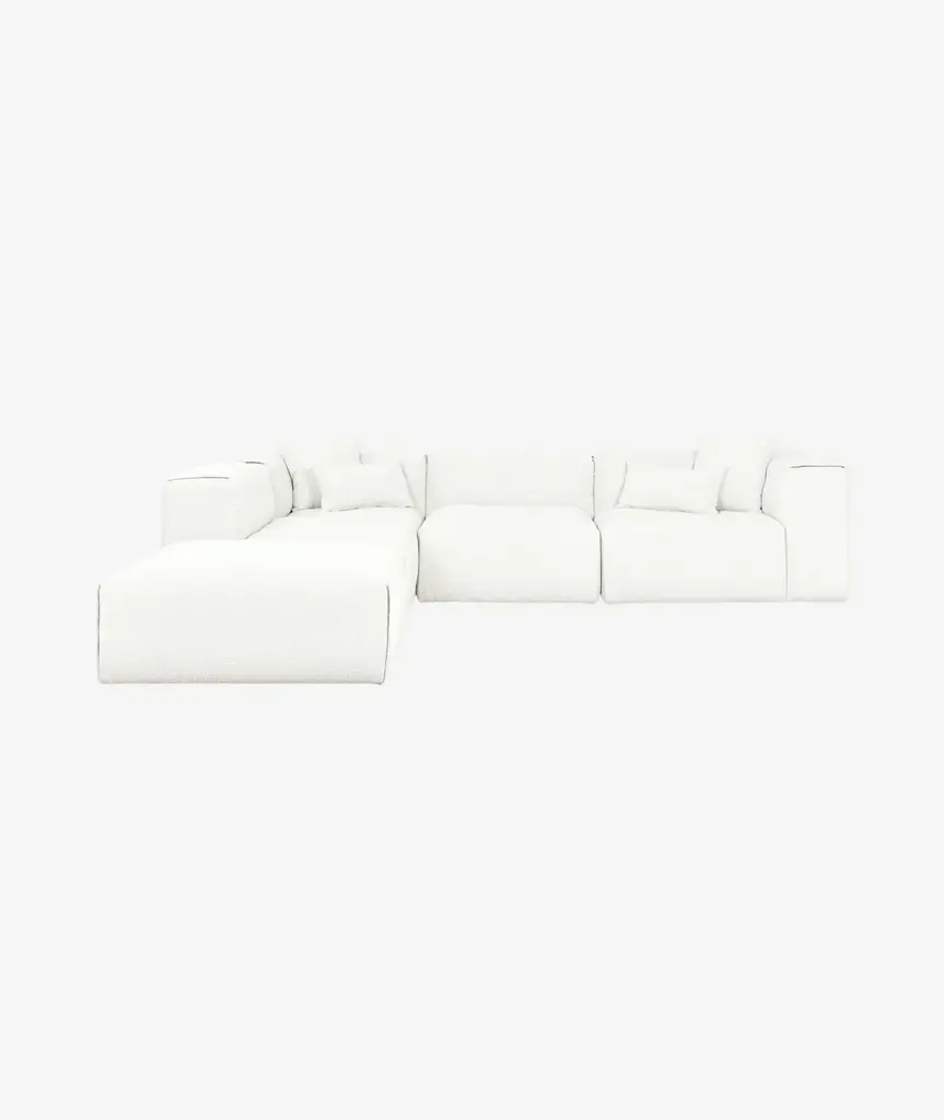 With plush comfort and a sophisticated, structured shape, our innovative Nest Modular Series invites you to sink in and stay awhile. The epitome of easy luxury, this versatile collection features five core components (Left Arm, Right Arm, Corner, Armless, and Ottoman) that offer near-endless configurations, allowing you to tailor your lounging experience to your evolving lifestyle. Each piece touts a plump low profile (courtesy of premium feather fill) encased in nubby bouclé fabric, with a Scandinavian-inspired modern shape that is versatile enough to hold court in a beach house, mountain escape, or boutique hotel lobby.