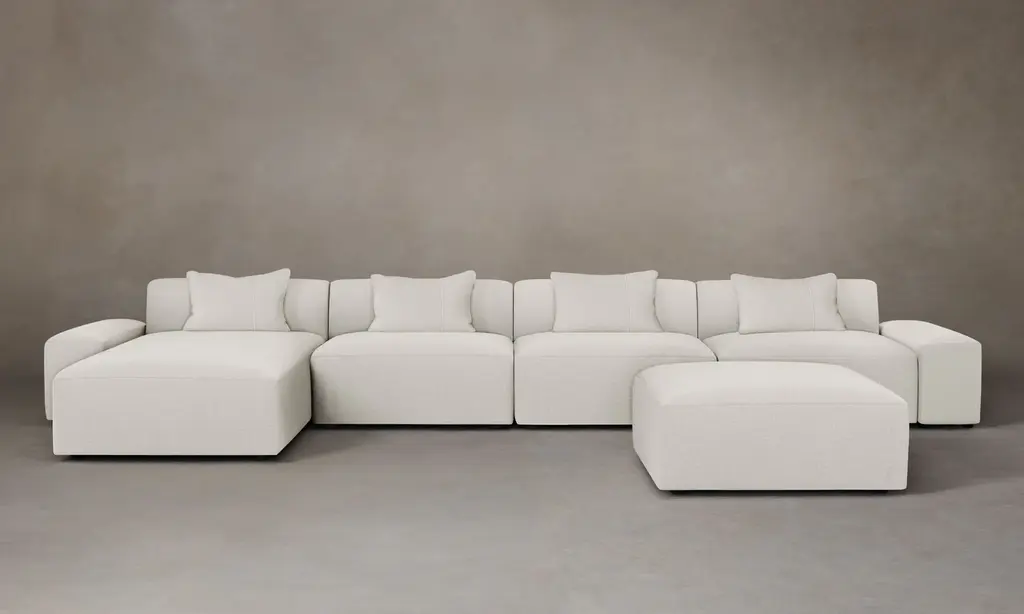 Indulge in plush comfort and sophisticated style with the Nest Modular 5-piece Sectional from Gus. Crafted with premium feather fill and wrapped in soft bouclé fabric, its Scandinavian-inspired design offers a versatile and luxurious lounging experience. With five core components, this collection allows for endless configurations to suit your evolving lifestyle. Elevate any space, from a beach house to a boutique hotel lobby, with this easy luxury piece. Highlights