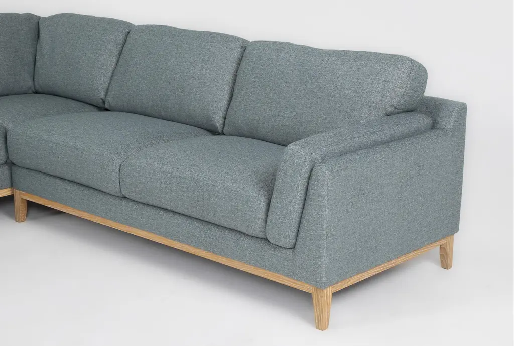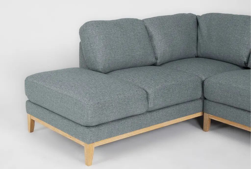 Introduce a touch of modern charm to your living room with the Newport Seafoam Blue Fabric 111" 2 Piece L-Shaped Sectional with Left Arm Facing Corner Chaise & Chair Set. This sectional features a firm comfort level and is upholstered in midnight jade fabric, providing both style and durability. The oak legs add a natural accent that complements the overall design.