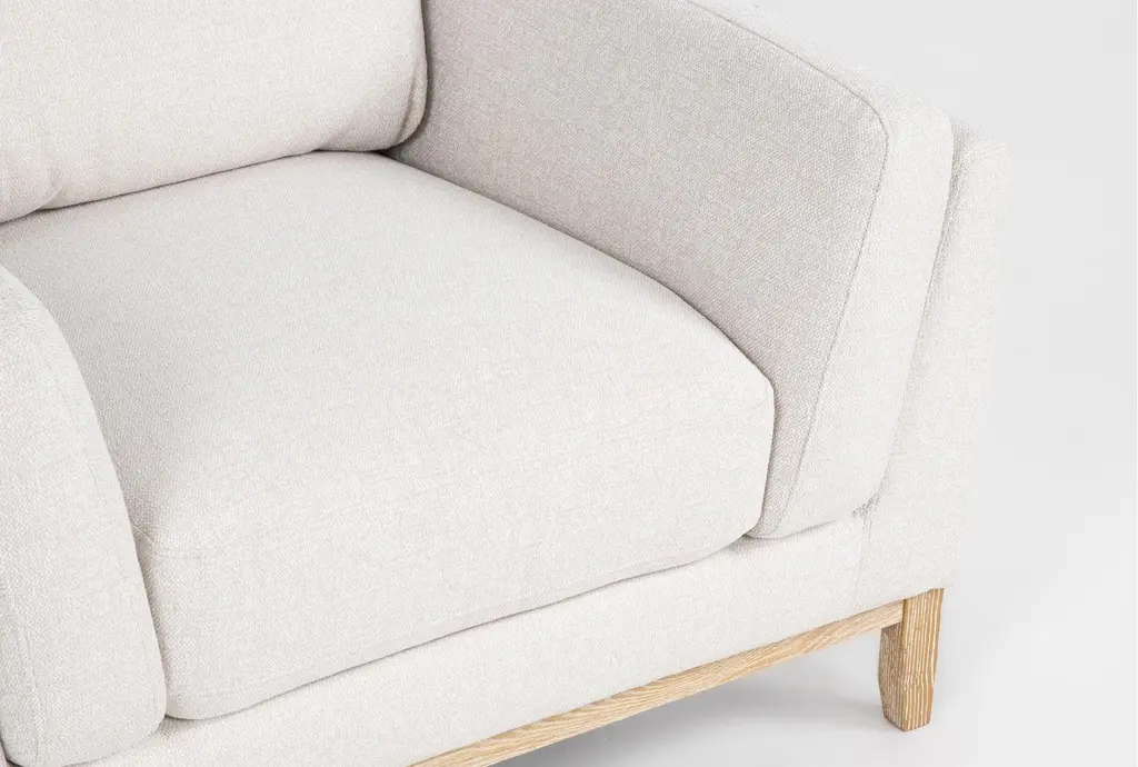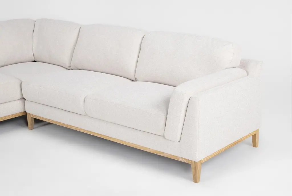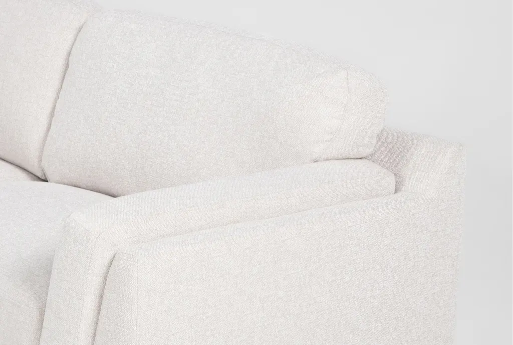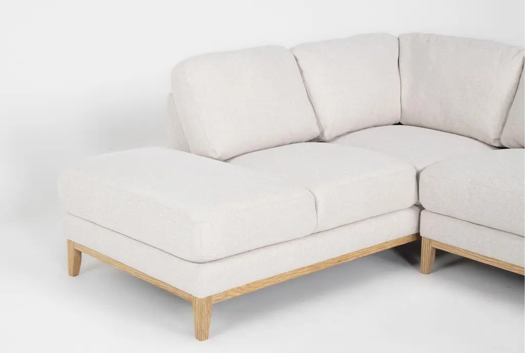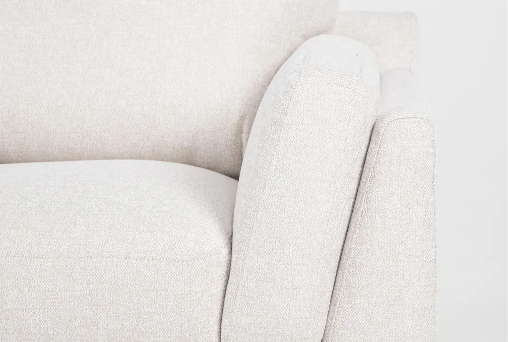 Experience comfort and style with the Newport White Fabric 111" 2 Piece L-Shaped Sectional With Left Arm Facing Corner Chaise & Chair Set. This modern sectional is perfect for your living room, providing a firm yet cozy seating experience. Its optical white fabric and oak wood base create a clean, sophisticated look that complements a variety of decor styles.