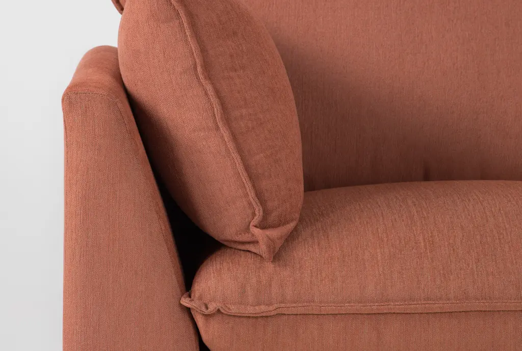 Designed and developed by Living Spaces to offer blissful cloud seating, our Nimbus Cloud modular sectional is the soft spot you've been waiting for. Irresistibly plush yet reliably supportive, reversible foam and down ticking seat cushions provide long-lasting comfort and maintain their shape and integrity over time. You'll love flange edge detail that lends a unique, casual look. Stocked in a luxurious chenille performance fabric that is easy to clean and care for, the piece can also be customized at no extra cost through our Special Order program.