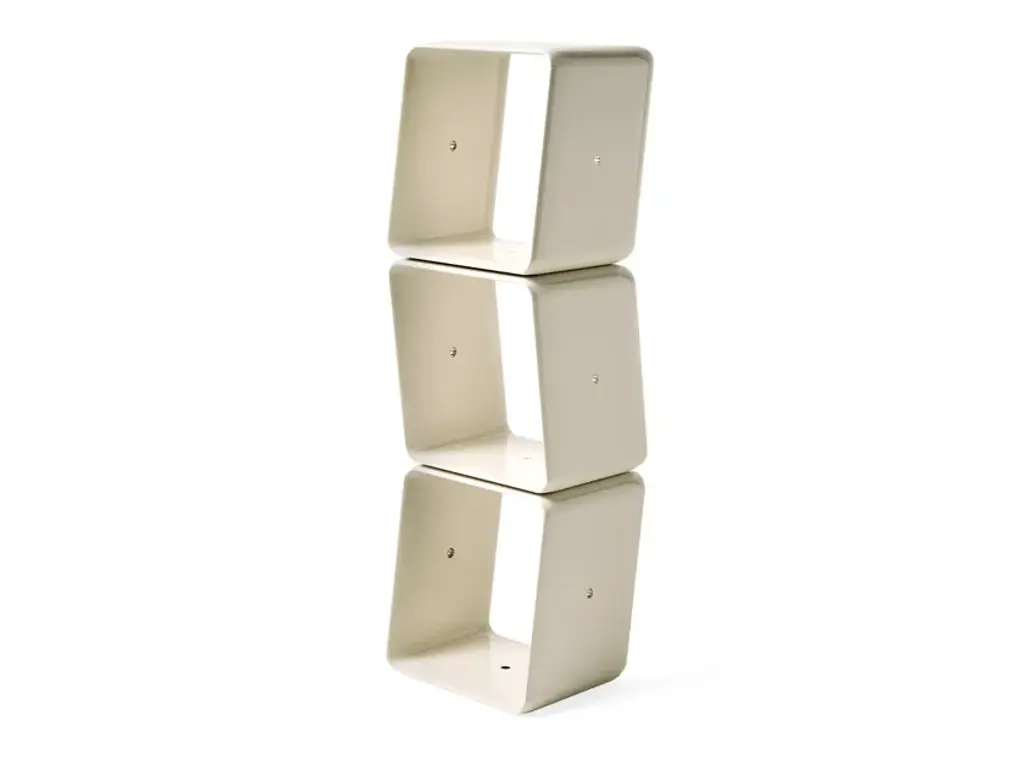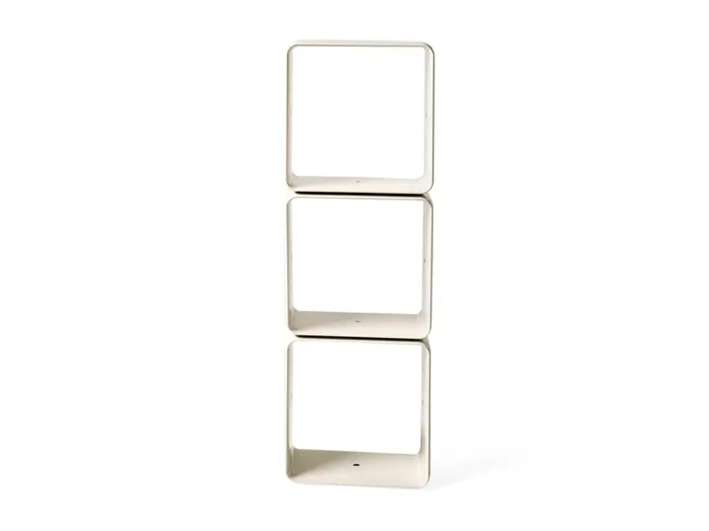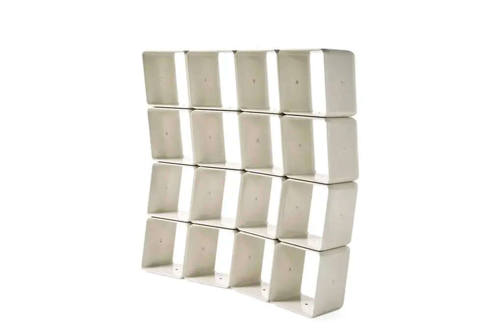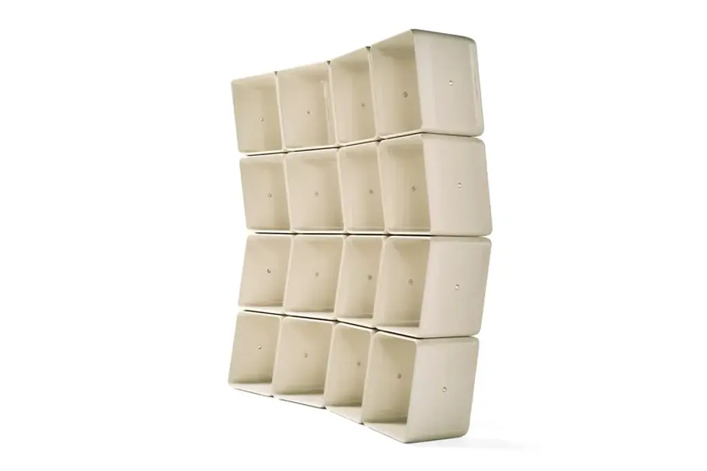 Obo ia a sidetable, container, bookcase, wall. It is clever, versatile and playful. The asymmetrical design of the single module allows for extremely varied three-dimensional compositions. An Obo composition can grow or shrink depending on needs. The versatility and flexibility of the system are exceptional.Modular container unit made with high-gloss plastic whose repetition and combinations are the base of a system of containers and spatial partitions. Each unit comes with two connection elements - also available separately - that make it possible to connect it to other units. It is also available a wall or ceiling fastening kit, suggested to improve the stability of compositions with more than three vertical modules. Obo can also be used as a sidetable and it is available in two colours: white and black.