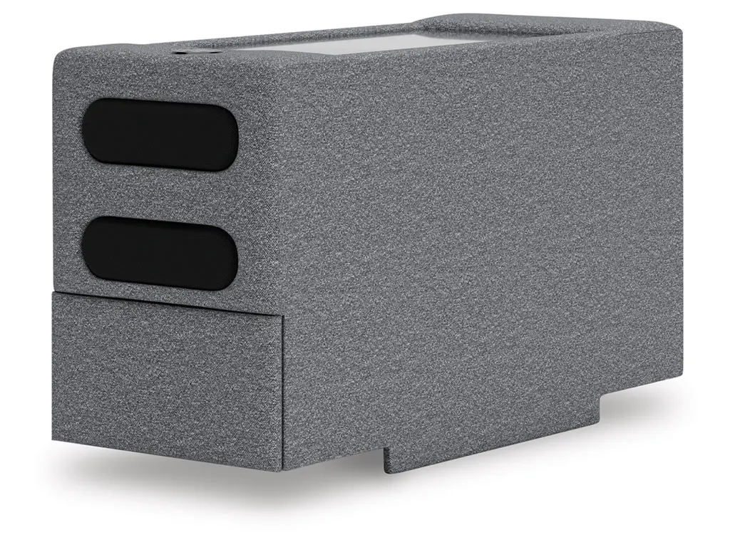 The Omaha by Ashley sectional with audio evolves as your family’s needs do. Its adaptable modular design makes staging and rearranging a breeze. Living room messes leaving you stressed? Cleaning is that much easier with stain-resistant and durable Next-Gen Nuvella™ fabric. A storage console with a built-in audio system gives family movie nights or gaming with friends an immersive upgrade. Complete with USB charging, this sectional brings fashionable function to everyday lounging.