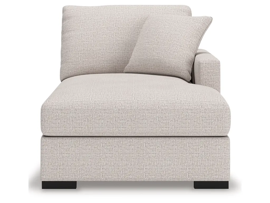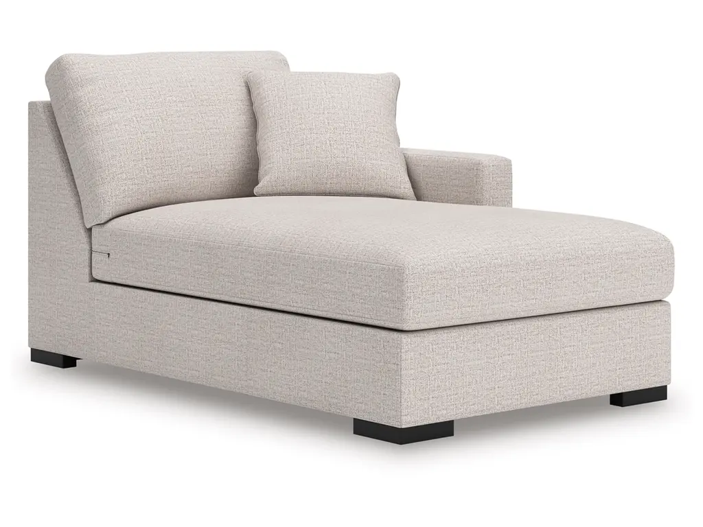 The Omaha by Ashley sectional with chaise evolves as your family’s needs do. Its adaptable modular design makes staging and rearranging a breeze. Living room messes leaving you stressed? Cleaning is that much easier with stain-resistant and durable Next-Gen Nuvella™ fabric. A handy console with subtle storage keeps all your remotes corralled. From easygoing mornings to family movie nights, this sectional brings fashionable function to everyday lounging.