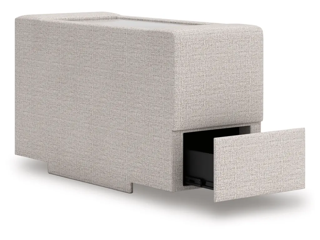 The Omaha by Ashley sectional with storage evolves as your family’s needs do. Its adaptable modular design makes staging and rearranging a breeze. Living room messes leaving you stressed? Cleaning is that much easier with stain-resistant and durable Next-Gen Nuvella™ fabric. A handy console with subtle storage keeps all your remotes corralled. From easygoing mornings to family movie nights, this sectional brings fashionable function to everyday lounging.