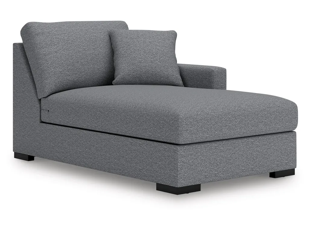The Omaha by Ashley sectional with chaise evolves as your family’s needs do. Its adaptable modular design makes staging and rearranging a breeze. Living room messes leaving you stressed? Cleaning is that much easier with stain-resistant and durable Next-Gen Nuvella™ fabric. Handy consoles with subtle storage keep all your remotes corralled. From easygoing mornings to family movie nights, this sectional brings fashionable function to everyday lounging.