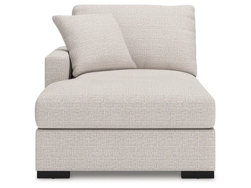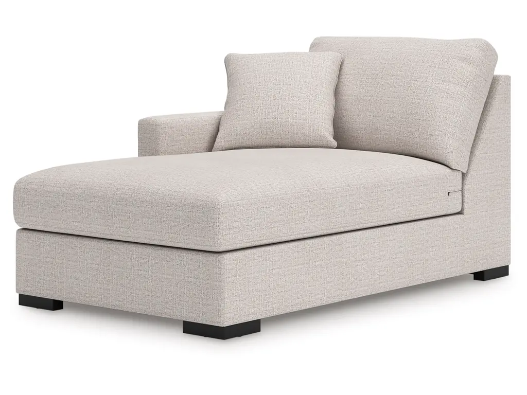 The Omaha by Ashley double-chaise sectional evolves as your family’s needs do. Its adaptable modular design makes staging and rearranging a breeze. Living room messes leaving you stressed? Cleaning is that much easier with stain-resistant and durable Next-Gen Nuvella™ fabric. Consoles with storage and a built-in audio system give family movie nights or gaming with friends an immersive upgrade. Complete with USB charging, this sectional brings fashionable function to everyday lounging.