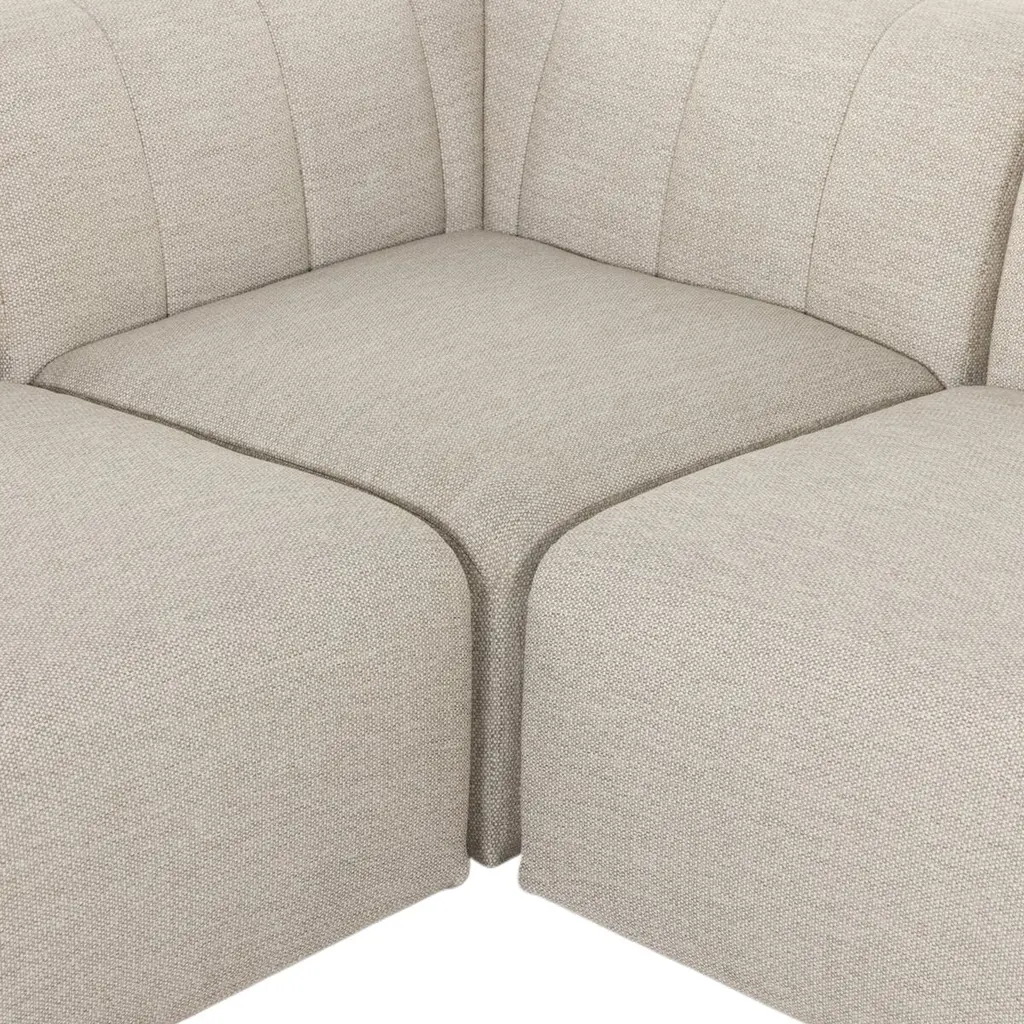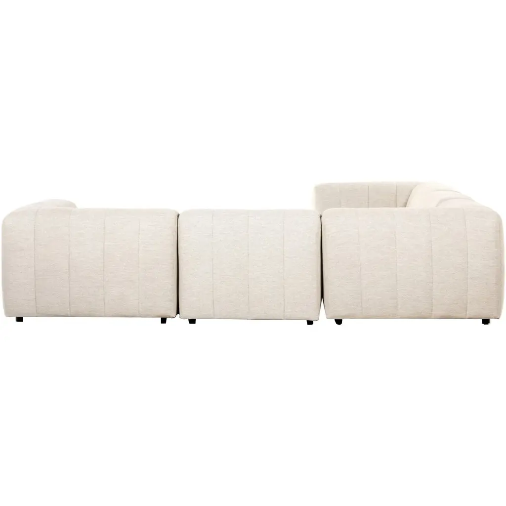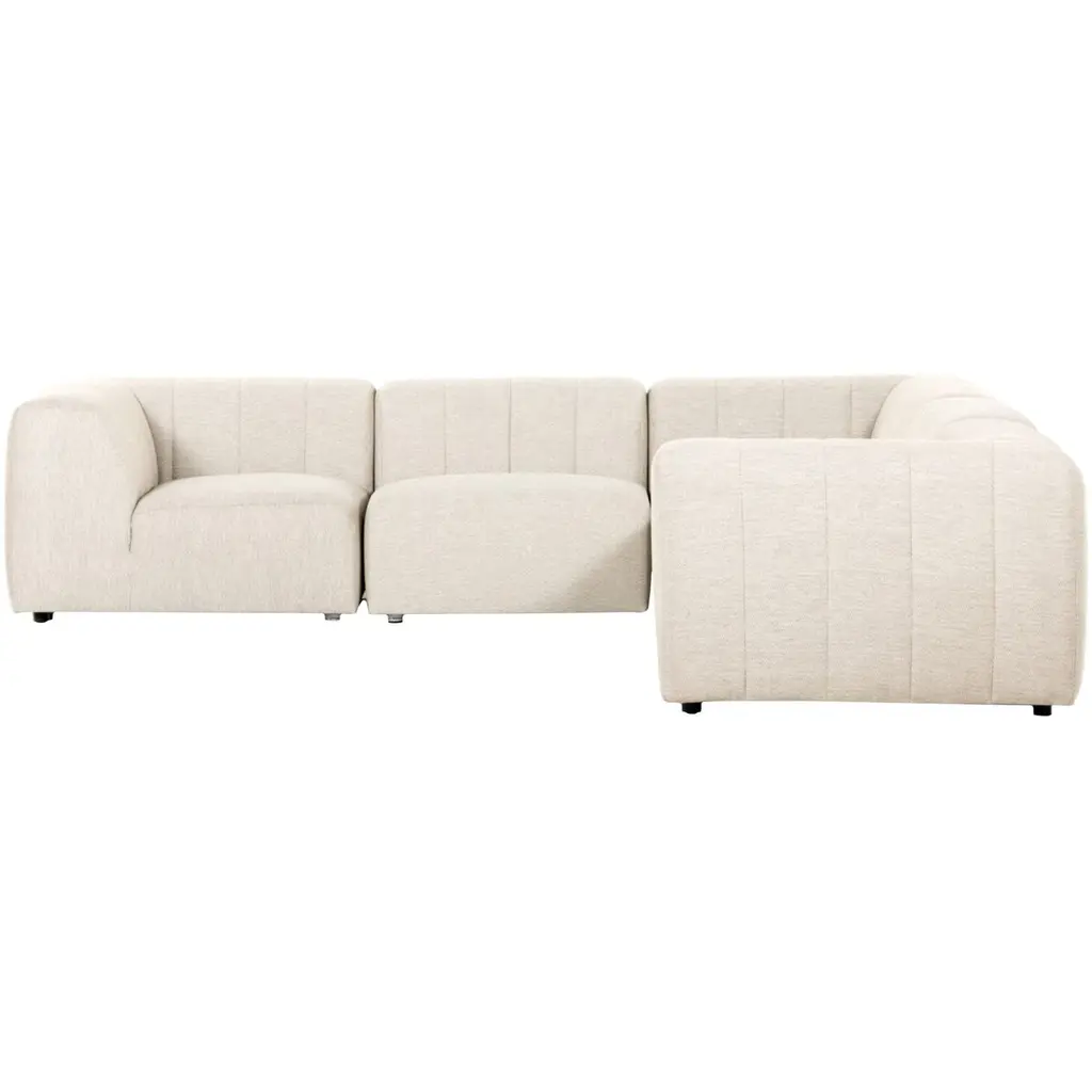 Wide, vertical channels and low styling speak to the Italian influence behind this outdoor-friendly five-piece sectional. Designed to bring elegance and comfort to your outdoor space, it is perfect for relaxing or entertaining. Remember to cover or store inside during inclement weather and when not in use to maintain its pristine condition.