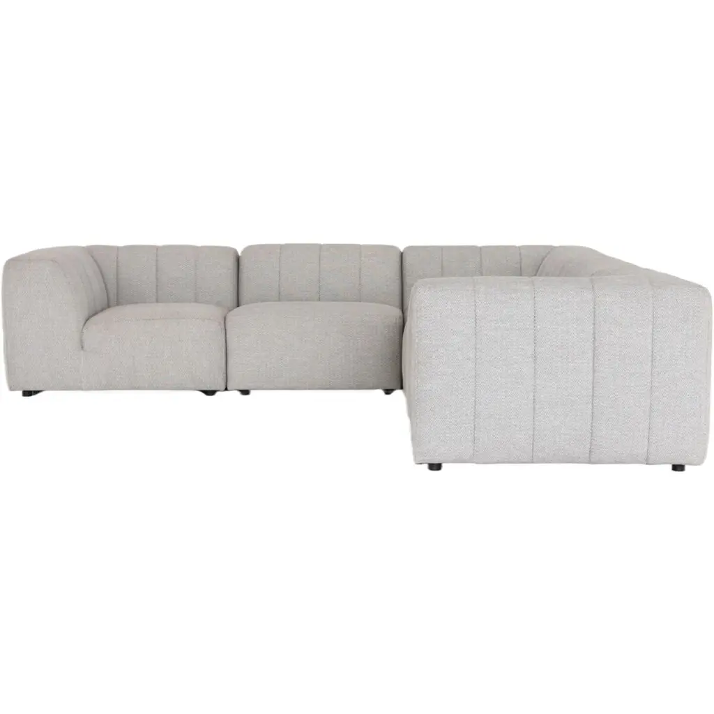 Wide, vertical channels and low styling speak to the Italian influence behind this outdoor-friendly five-piece sectional. Designed to bring elegance and comfort to your outdoor space, it is perfect for relaxing or entertaining. Remember to cover or store inside during inclement weather and when not in use to maintain its pristine condition.