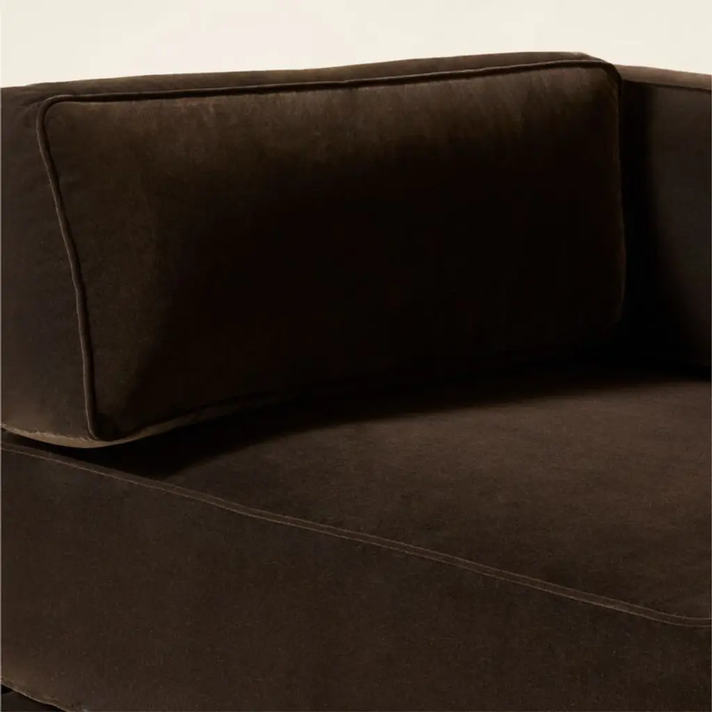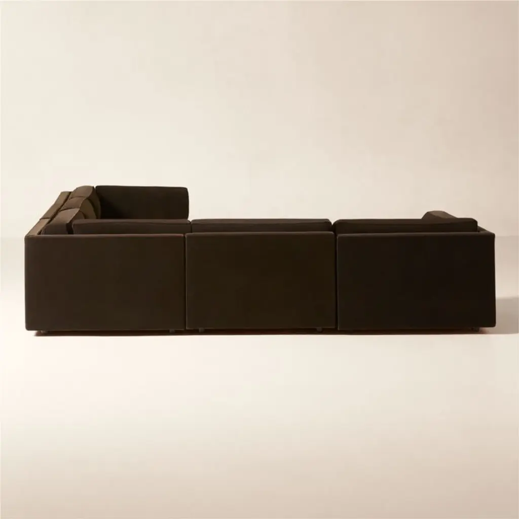 Hand-assembled in the United States, sleek modular sectional designed by Barcelona-based Mermelada Estudio invites you in with plush cushions, a low-rise back and performance velvet upholstery. The frame is benchmade using kiln-dried solid wood certified sustainable by the Forest Stewardship Council (FSC) with mortise-and-tenon joinery for unmatched strength and durability. Premium high-density foam cushions are wrapped in feathers and down for softness and support. CB2 exclusive.