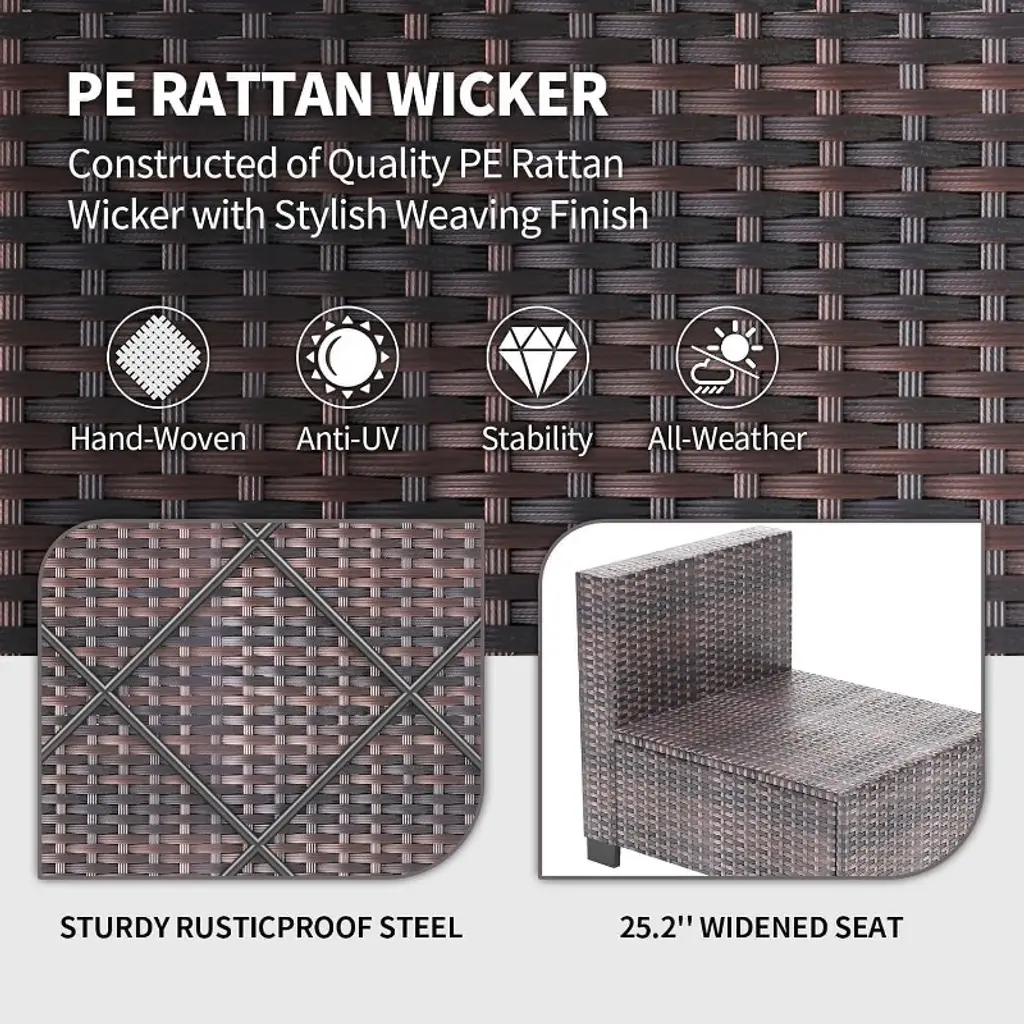 Patio Furniture Set 7-Piece Outdoor Conversation Set with Detachable Cushions ¨C Waterproof Rattan Sectional Sofa, Glass Top Table, Gray & Light Gray for Garden, Poolside, Patio?? Premium All-Weather ConstructionCrafted for lasting elegance and durability, this 7-piece patio set combines premium resin rattan weaving with a rust-resistant powder-coated steel frame built to withstand sun, moisture, and frequent use. The included cushions feature UV-protected, waterproof polyester covers (removable and machine-washable), while the temperED glass-top coffee table adds a touch of modern sophistication. Adjustable foot pads ensure stability on uneven ground.??? Versatile 7-Piece ConfigurationDesigned for flexibility and spacious comfort, this set includes: 4 armless single chairs 2 corner armchairs 1 rectangular coffee table with tempered glass top 6 thick seat & back cushions (detachable) Arrange the modular pieces to fit small or large spaces¡ªperfect for hosting 7¨C9 guests in a stylish sectional layout.?? Ideal for Indoor & Outdoor UseWhether placed on the patio, balcony, porch, garden, poolside, or even in a sunroom, this conversation set blends seamlessly into any environment. The 13-inch seat height and ergonomic cushion design provide superior comfort for long conversations, outdoor dining, or leisurely lounging.?? Easy Assembly & Complete PackagingThe set arrives in multiple boxes (may ship separately) with all hardware and clear instructions included. While assembly is required, the straightforward process ensures you can quickly create your ideal outdoor oasis.?? Reliable Support & WarrantyBacked by responsive customer service, TruAIR ensures a smooth experience. In case of shipping damage, missing parts, or quality concerns, their team provides timely support to keep your outdoor space looking perfect.?? Technical Specifications: Brand: TruAIR Set Includes: 4 armless chairs + 2 corner chairs + 1 coffee table + 6 cushions Overall Dimensions: 105.5¡å L x 76.5¡å W x 26¡å H Table Material: Tempered glass top + rattan base Frame Material: Iron + resin rattan Cushion Material: Polyester (waterproof, UV-resistant, machine-washable) Item Weight: 182 lbs Assembly Required: Yes Style: Modern rectangular sectional Best Use: Patio, balcony, poolside, garden, deck ? Why Customers Love This Set: ? Durable & weather-resistant ¨C built for long-term outdoor use ? Modular design ¨C arrange to fit large or compact spaces ? Comfortable seating ¨C plush cushions with ideal seat height ? Easy maintenance ¨C wipeable rattan + machine-washable cushions ? Elegant aesthetic ¨C tempered glass table and woven texture ? Great value ¨C 7-piece set ideal for entertaining