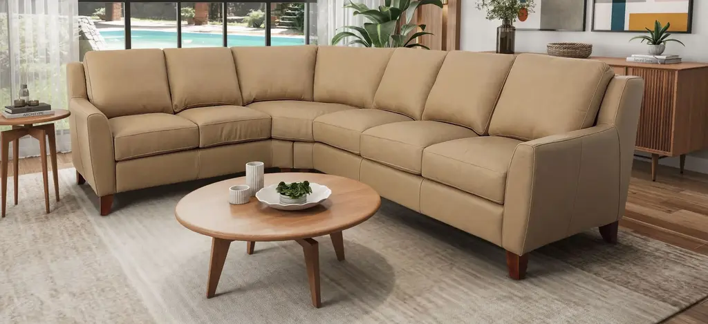 The Pavia Sectional 2-pc. is proudly made in the USA from 100% top grain leather and is built to last with its Limited Lifetime Frame & Spring warranty. It begins with a stylish dome arm offering a contemporary yet relaxed feel. The dome arm transitions into a lean wing back detail giving the Pavia additional visual interest and definition. It's then upholstered in a soft and subtly two-toned Aniline Plus top grain leather which retains the natural beauty and feel of the leather hide while providing superior protection against everyday use. Fully padded side & back panels provide additional structure and quality to an already excellent product.