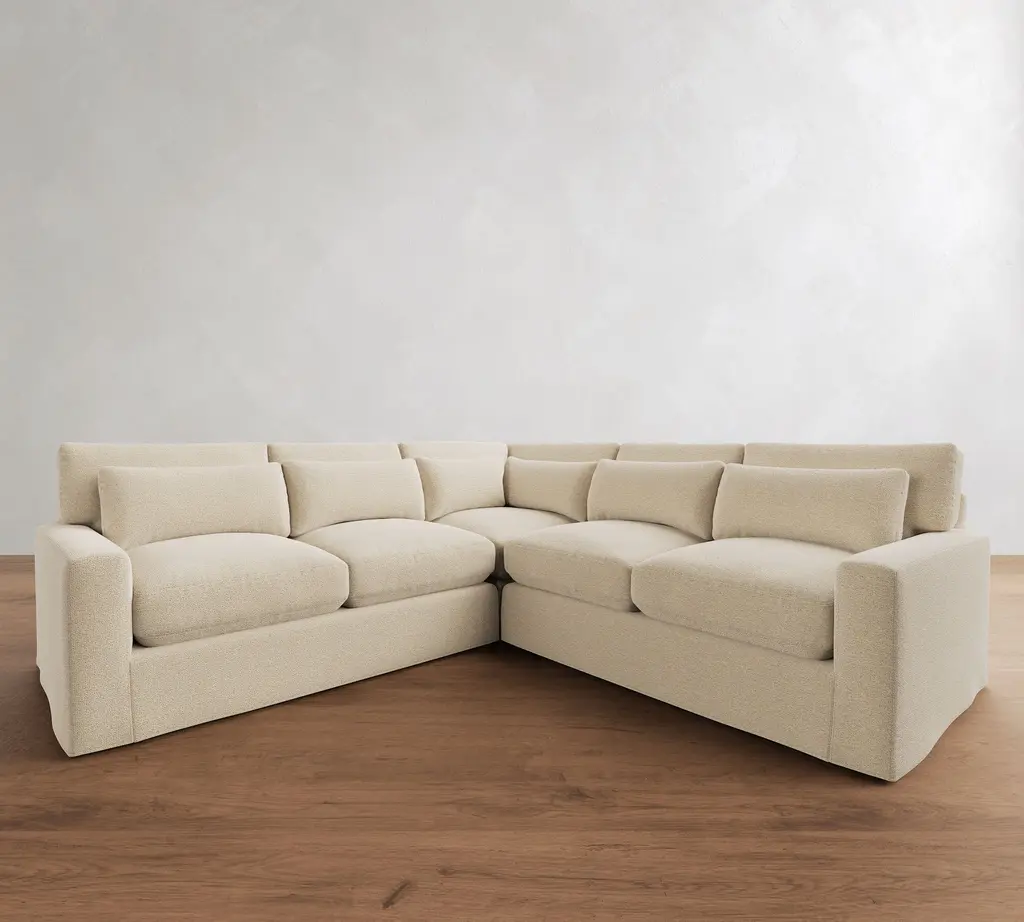 Pb Comfort Modern Deep Square Arm Slipcovered 3-Piece L-Shaped Sectional (110")