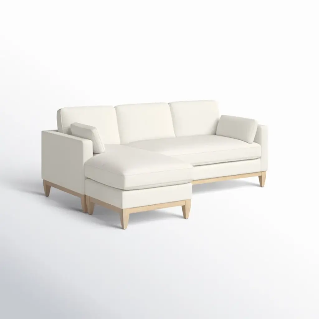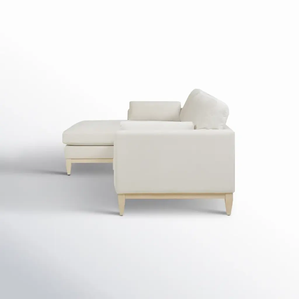This chaise sectional sofa perfectly fuses style and comfort with a customizable orientation. Position the reversible chaise for a left-arm-facing or right-arm-facing orientation. Natural wood legs and a solid wood frame offer stability, while the luxurious upholstery layers on soft sophistication. The foam cushions and two extra pillows are reversible and have removable covers for easy care; sinuous springs ensure support.