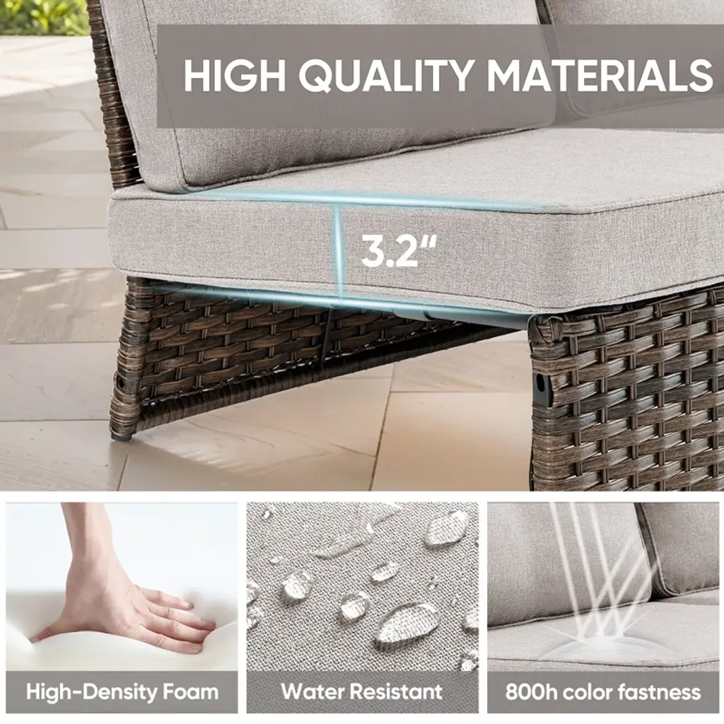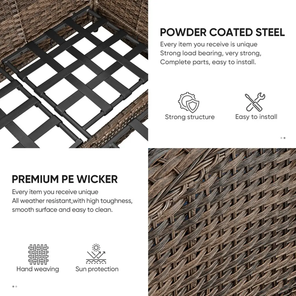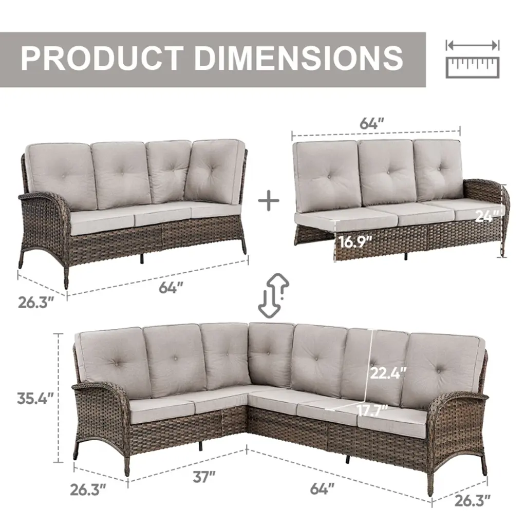 Introducing the Belord Outdoor Sectional Sofa ¨C the ultimate upgrade for your backyard hangouts! This stylish patio set features a spacious 94.4-inch wide L-shaped sectional sofa, designed for comfort and relaxation. With a sturdy powder-coated steel frame and handwoven PE wicker, it¡¯s as durable as it is elegant. Whether you're cozying up around a fire or enjoying drinks with friends, this sectional couch will elevate your outdoor space, creating the perfect atmosphere for family fun and relaxation.