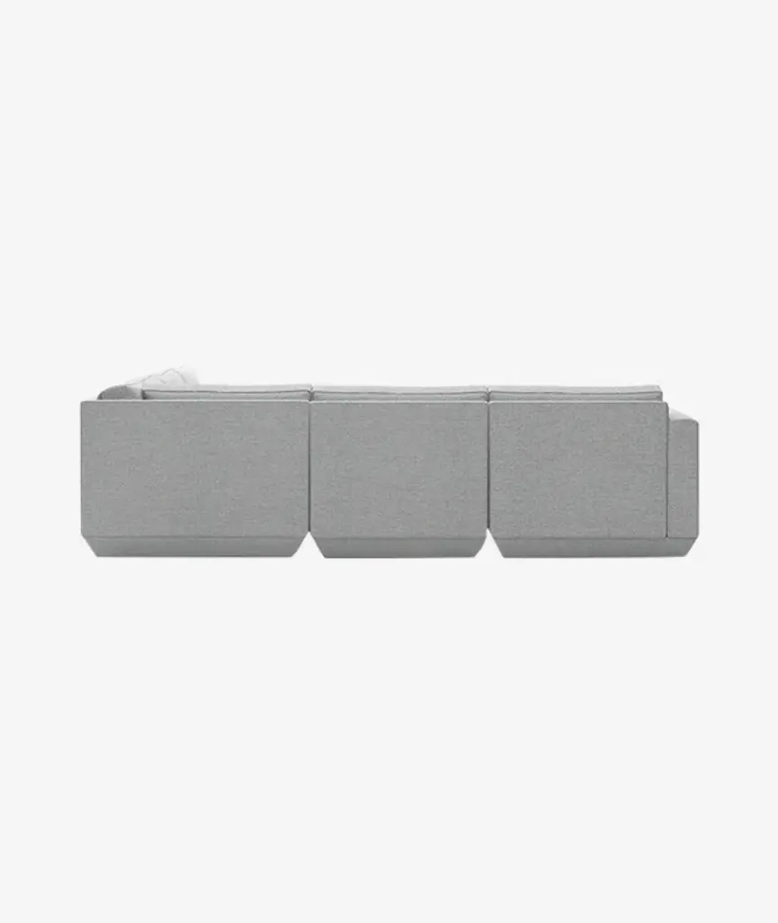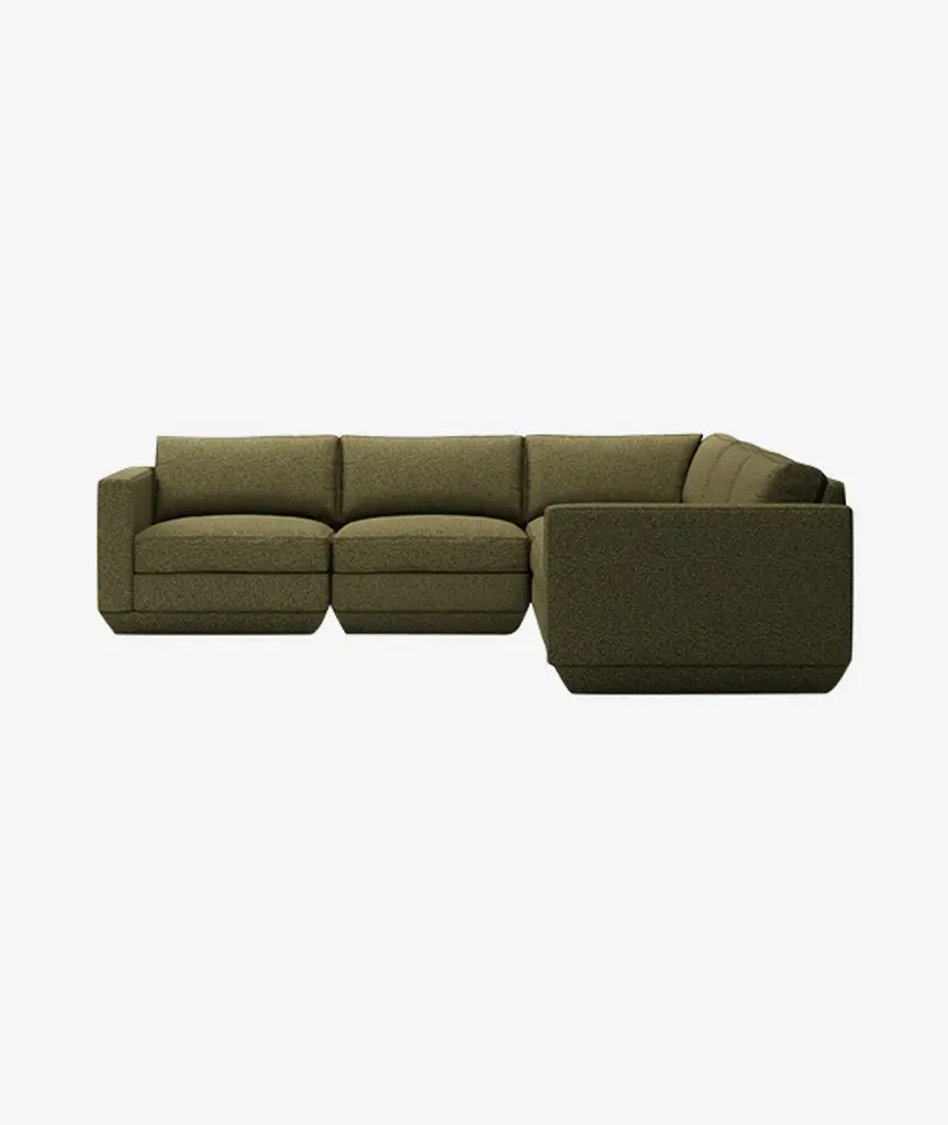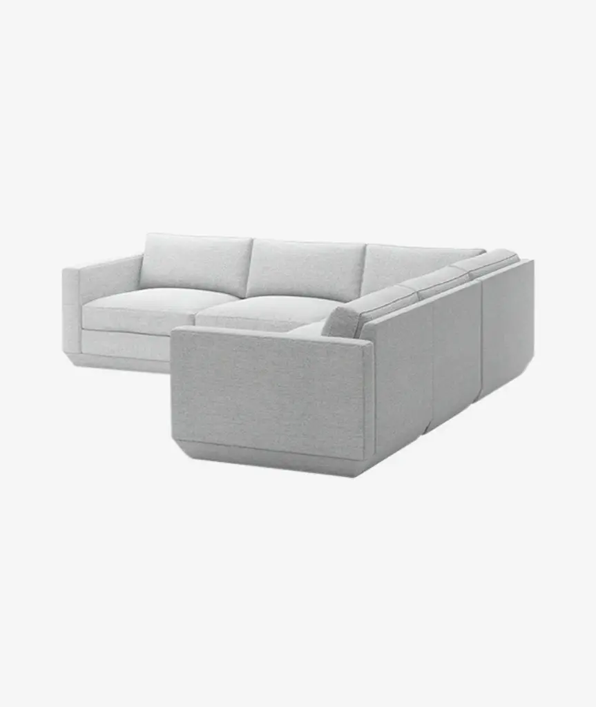 The Podium Modular Collection is an adaptable seating system that brings modern elegance and luxurious comfort to any space. The Podium features seven core components (Right Arm, Left Arm, Armless, Corner, Ottoman, Left Lounge and Right Lounge) that can be arranged in unlimited configurations to suit any vision or layout. Components can then be easily reconfigured or added later to adapt to your evolving lifestyle. Each component showcases a relaxed silhouette inspired by 1970’s Modernism: a low and deep sit created by plush seat and back cushions (filled with eco-friendly synthetic down derived from recycled water bottles), and an attractive, subtly angled, chamfered base.