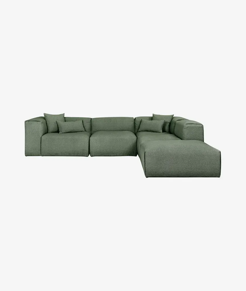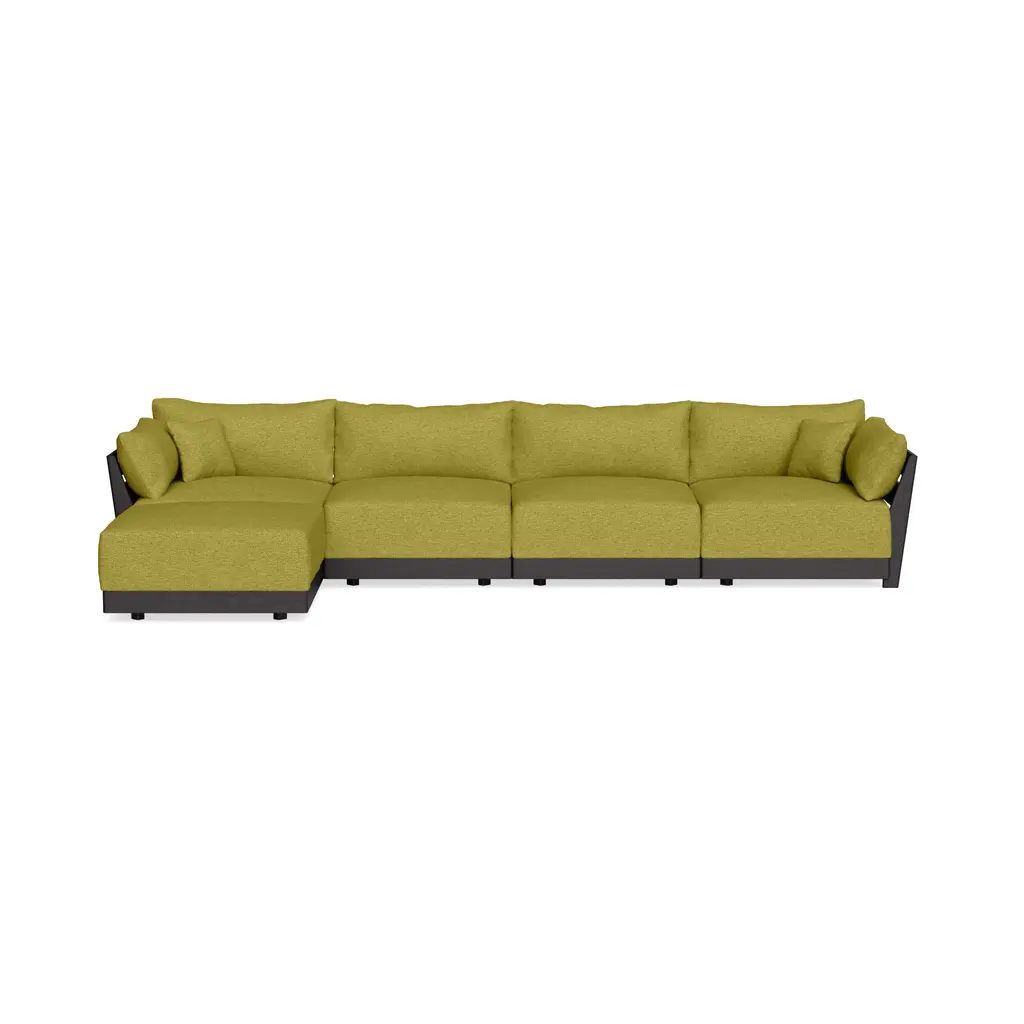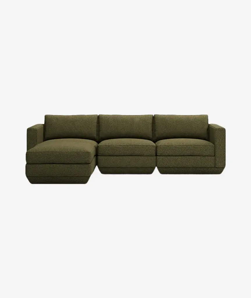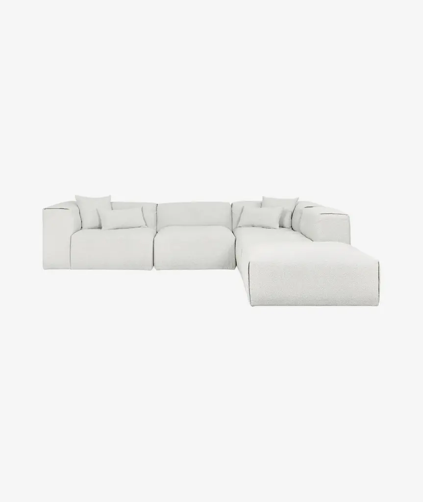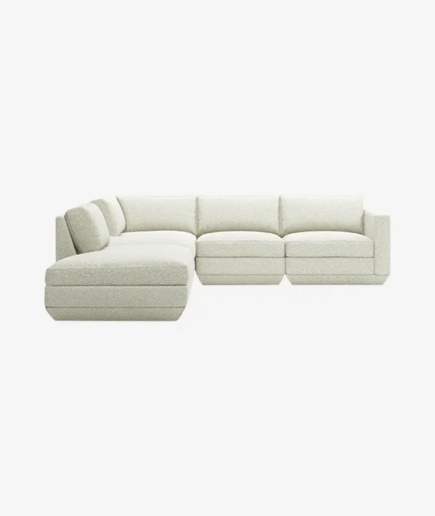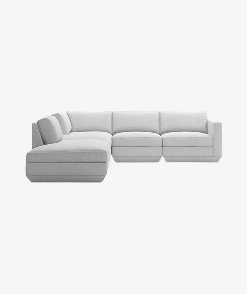 The Podium Modular Collection is an adaptable seating system that brings modern elegance and luxurious comfort to any space. The Podium features seven core components (Right Arm, Left Arm, Armless, Corner, Ottoman, Left Lounge and Right Lounge) that can be arranged in unlimited configurations to suit any vision or layout. Components can then be easily reconfigured or added later to adapt to your evolving lifestyle. Each component showcases a relaxed silhouette inspired by 1970’s Modernism: a low and deep sit created by plush seat and back cushions (filled with eco-friendly synthetic down derived from recycled water bottles), and an attractive, subtly angled, chamfered base.