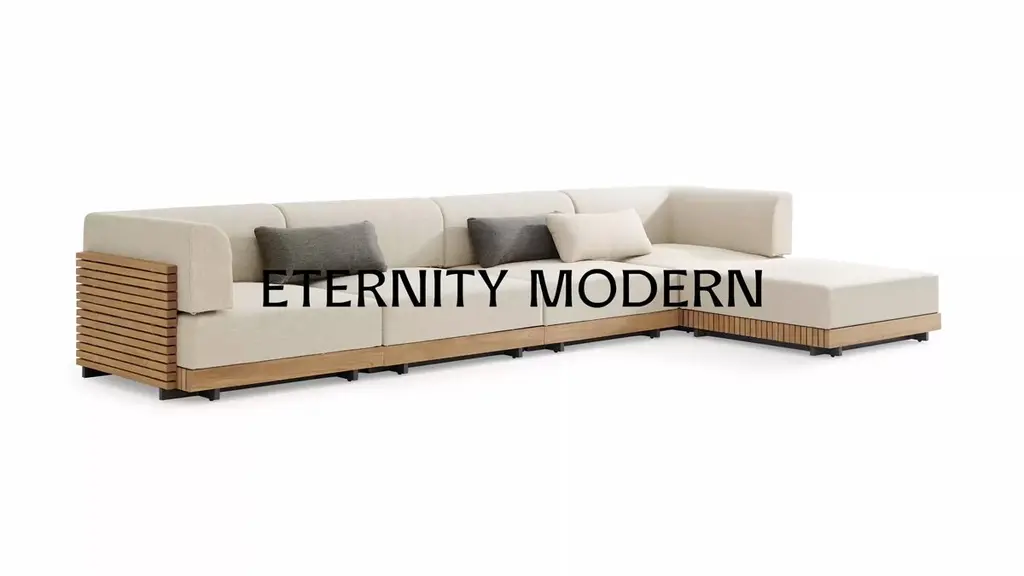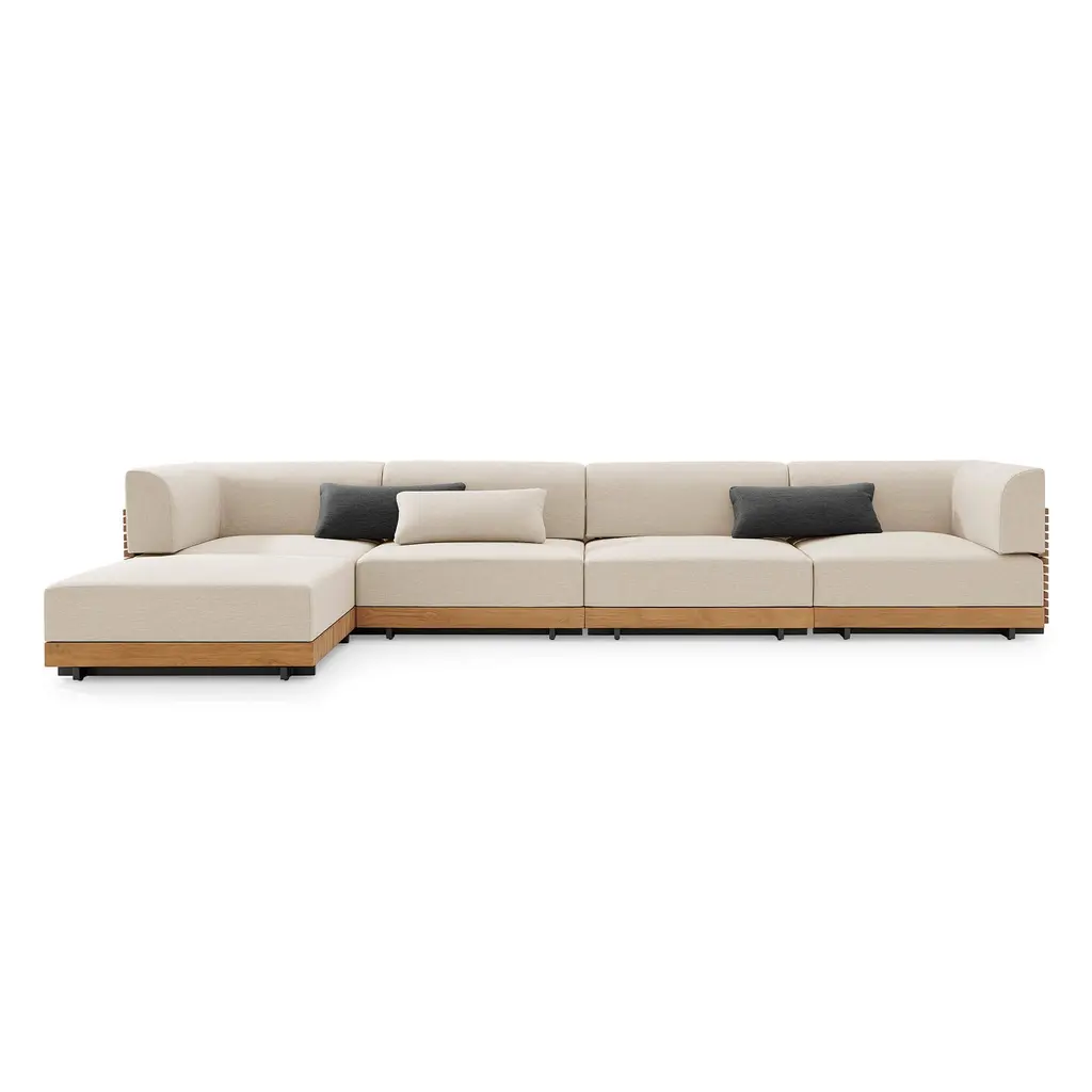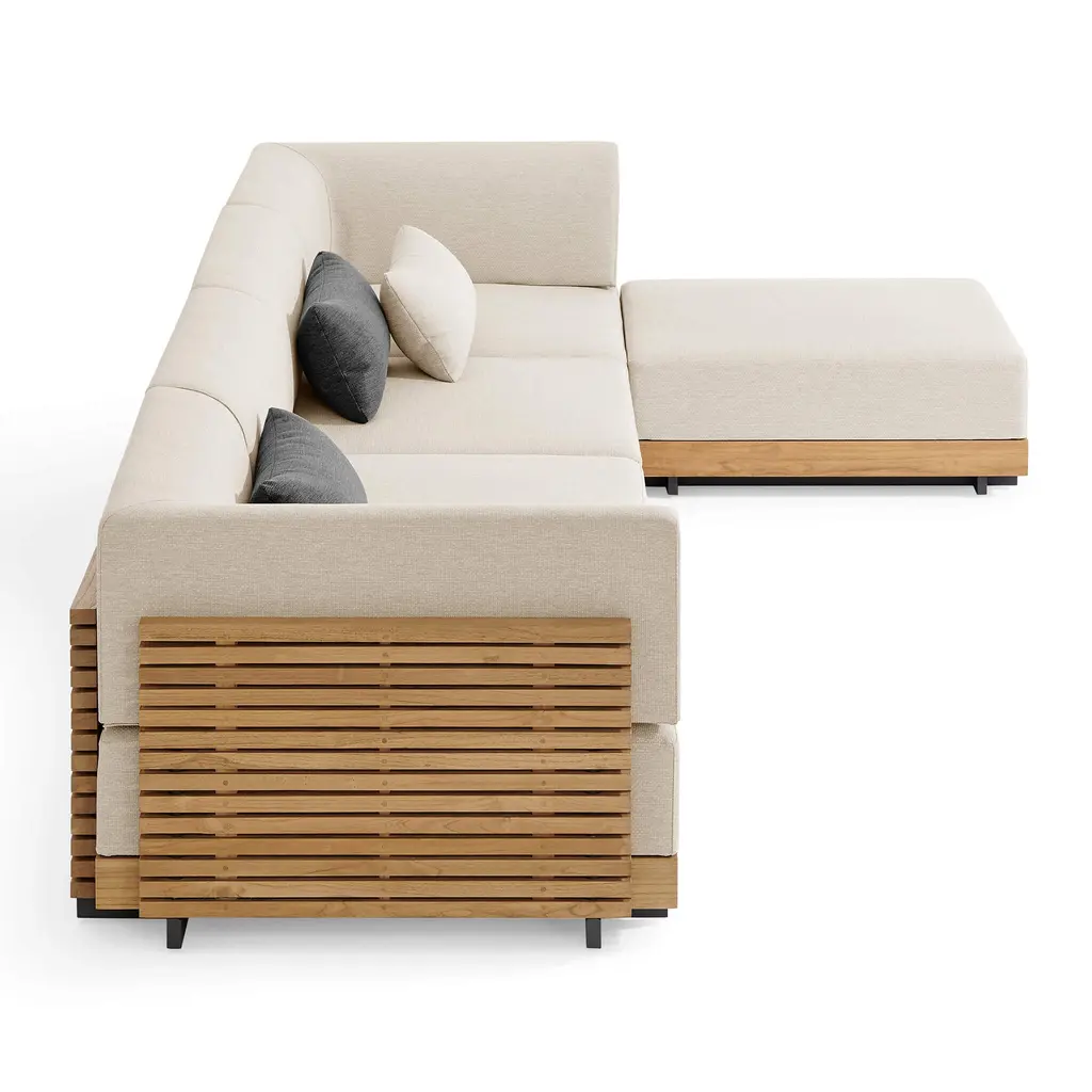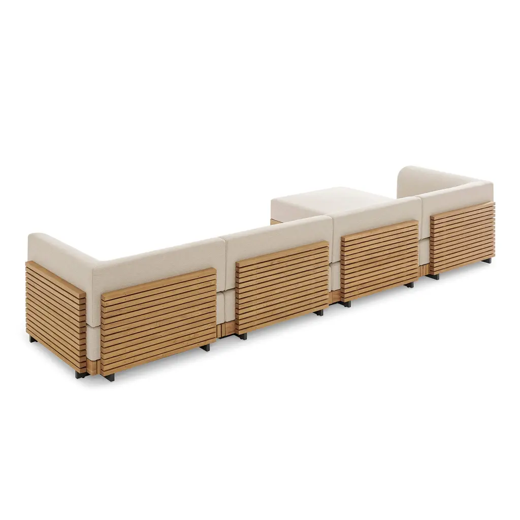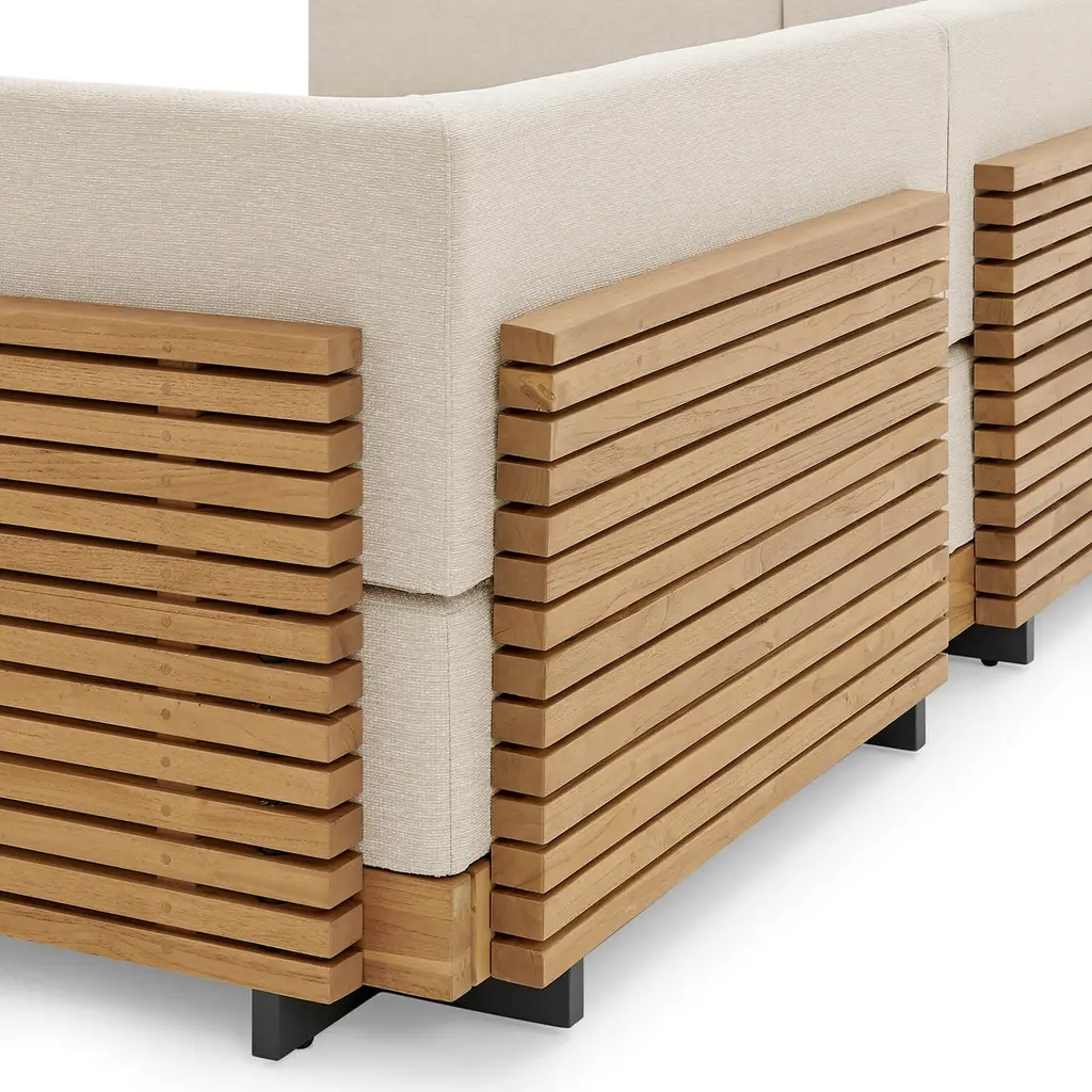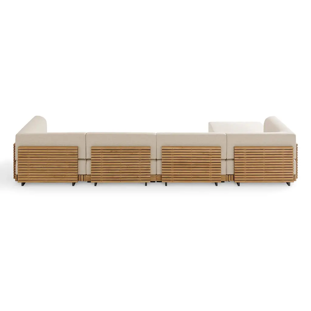 Powell Modern Outdoor Slatted Teak Wood Upholstered Modular Sectional Sofa | Combination 002