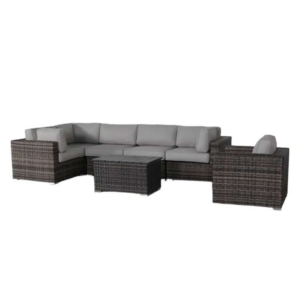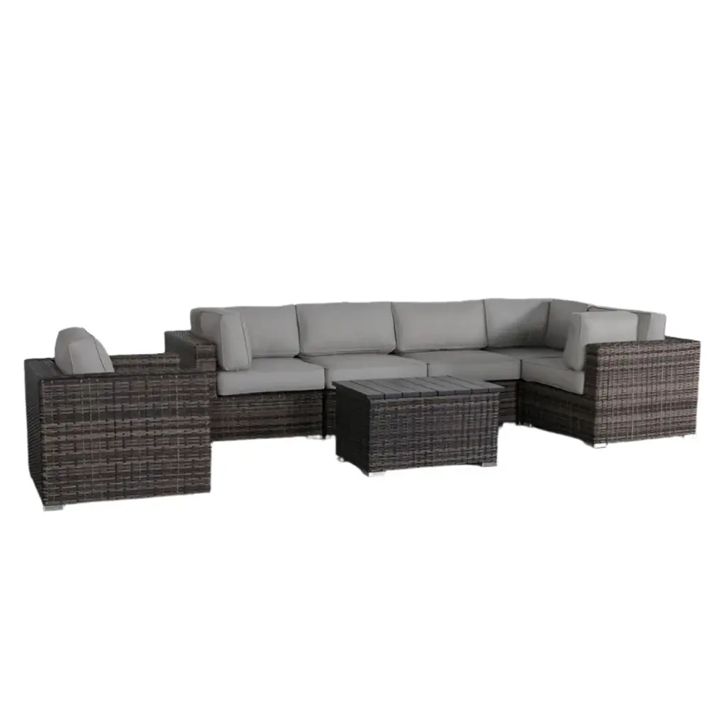 Short and Sweet: Wicker Patio Sectional Set Outdoor Living Set Modern Wicker Seating Group Descriptive and Engaging: Luxurious Outdoor Living Set: Comfort Meets Style Elevate Your Outdoor Space: Stylish Wicker Sectional All-Weather Comfort: Modern Wicker Patio Furniture Highlighting Key Features: No-Assembly Wicker Patio Set: Instant Outdoor Oasis Ultra-Soft Cushions: The Perfect Outdoor Retreat Durable Wicker, Timeless Style: Your Dream Patio Set Entertain in style and comfort with this collection. With our exclusive ultra-soft and plush cushions, this piece comprises the perfect balance of beauty and functionality. Handcrafted from durable strands of wicker incorporating a modern aesthetic, it is an ultimate showstopper that will enhance the look of any outdoor living space. Best of all, no assembly is required. Gently sloped back for increased comfort and support