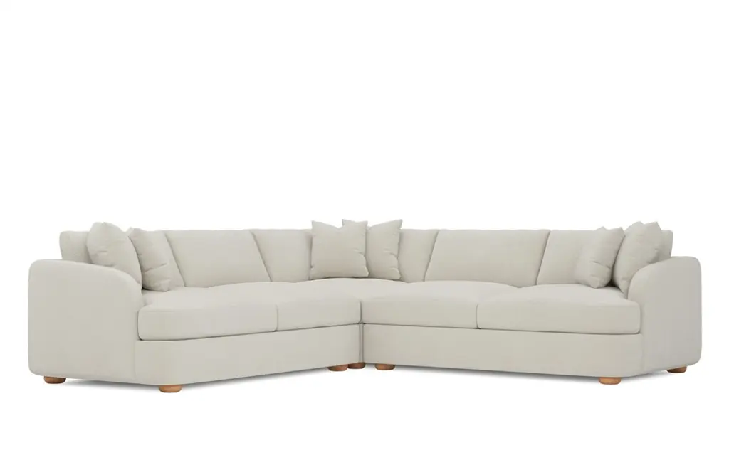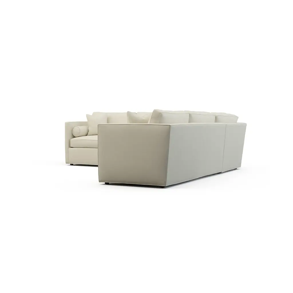 The 3 Piece Pridwin Sectional brings clean geometry and casual ease to modern living. This low-profile piece balances generous seating with tailored lines, while cylinder bolsters add a crisp finishing detail. Its corner sectional design provides ample seating while creating the perfect central location for gathering. Ships In 8-10 Weeks Two 24" x 11" bolster pillows Six loose back pillows Three loose seat cushions Includes two sofas and one corner As Shown Fabric: Rayburn Oatmeal As Shown Finish: Antique Walnut If you choose to purchase COM, once you have placed your order a customer service rep will contact you regarding where to send your fabric. Please note that current lead time is 17-19 weeks once your fabric arrives at the factory, and if unused fabric is under 1.5 yards, it cannot be sent back to you.This product can be special ordered in additional fabrics, leathers, and cushion fillings. Click here to email us for for additional information about special ordering.This image is for illustrative purposes only. The colors shown are accurate within the constraints of lighting, photography, and the color accuracy of your screen.