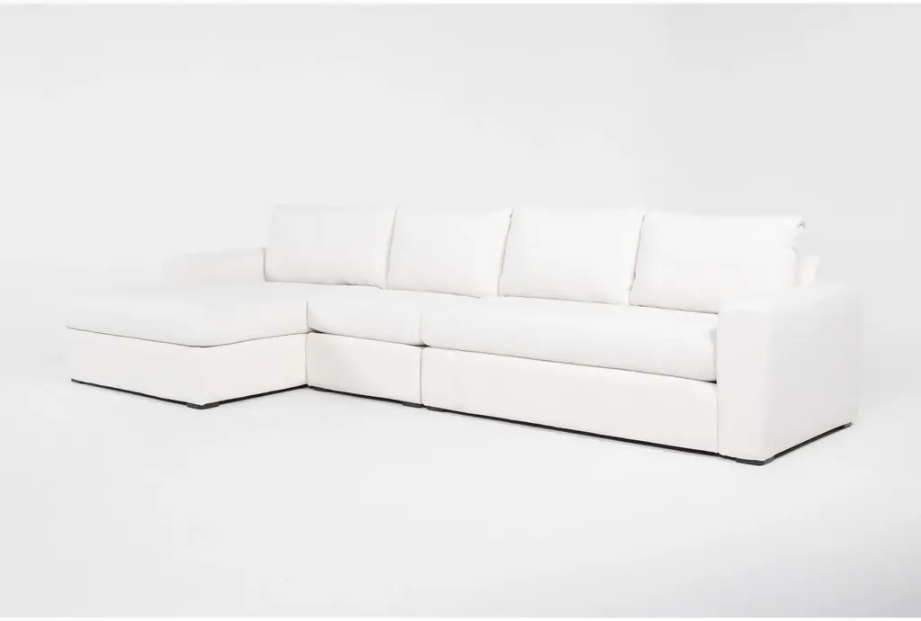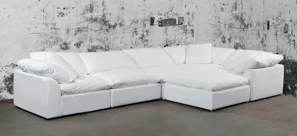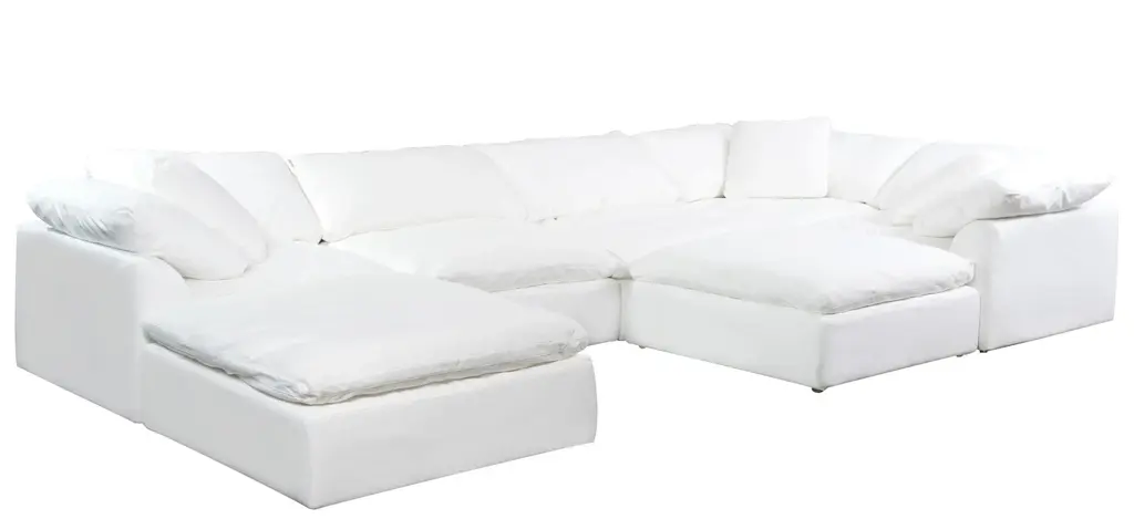 For a living room with style, comfort and spacious seating, the Puff Slipcover 6-pc. sectional sofa will satisfy your needs. Its neutral upholstery is versatile enough to work with a variety of decor.