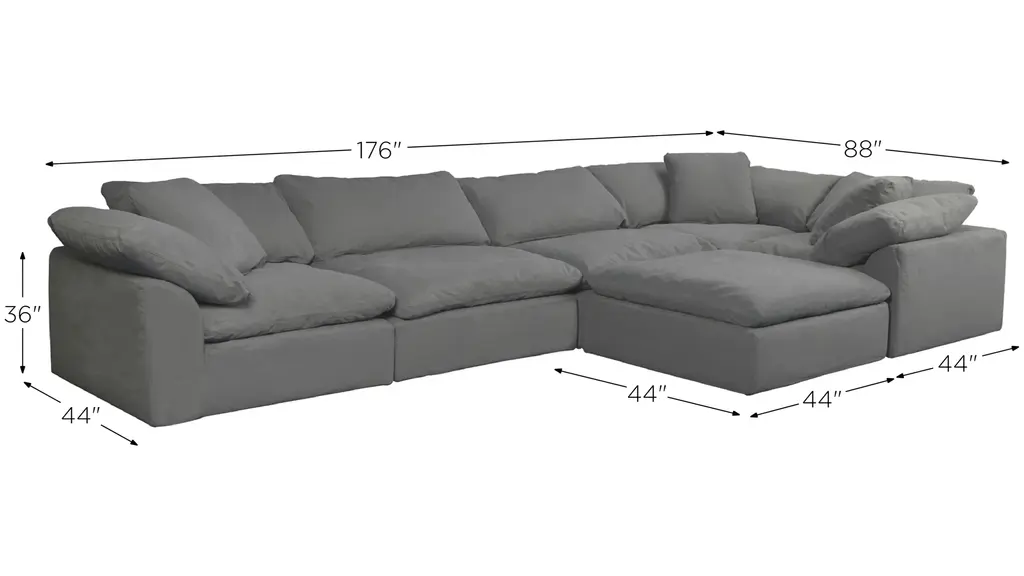 For a living room with style, comfort and spacious seating, the Puff Slipcover 6-pc. sectional sofa will satisfy your needs. Its neutral upholstery is versatile enough to work with a variety of decor.