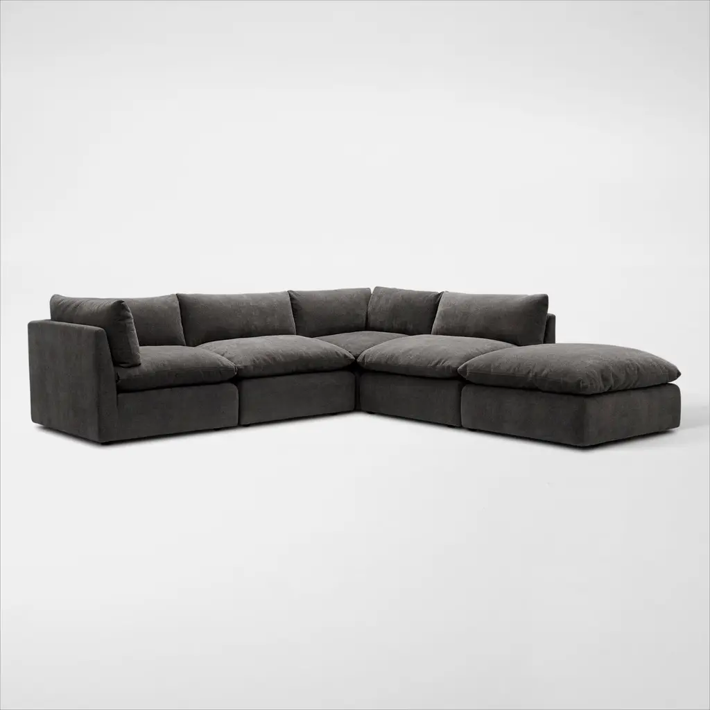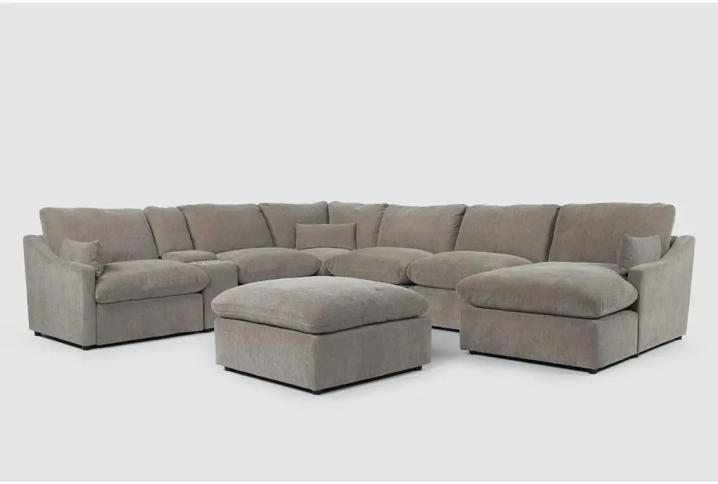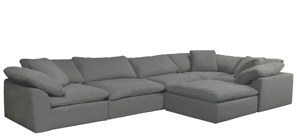 For a living room with style, comfort and spacious seating, the Puff Slipcover 7-pc. sectional sofa will satisfy your needs. Its neutral upholstery is versatile enough to work with a variety of decor.