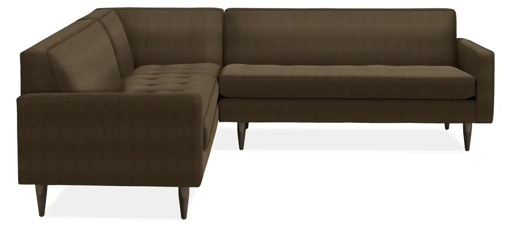 A small-scale sectional with sophisticated style, Reese adds refinement with details like button tufting, precise welting and tall, tapered legs. The shallow seat features structured cushions for supportive, upright sitting for people of all sizes.