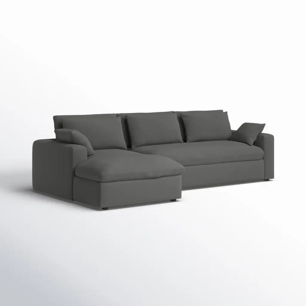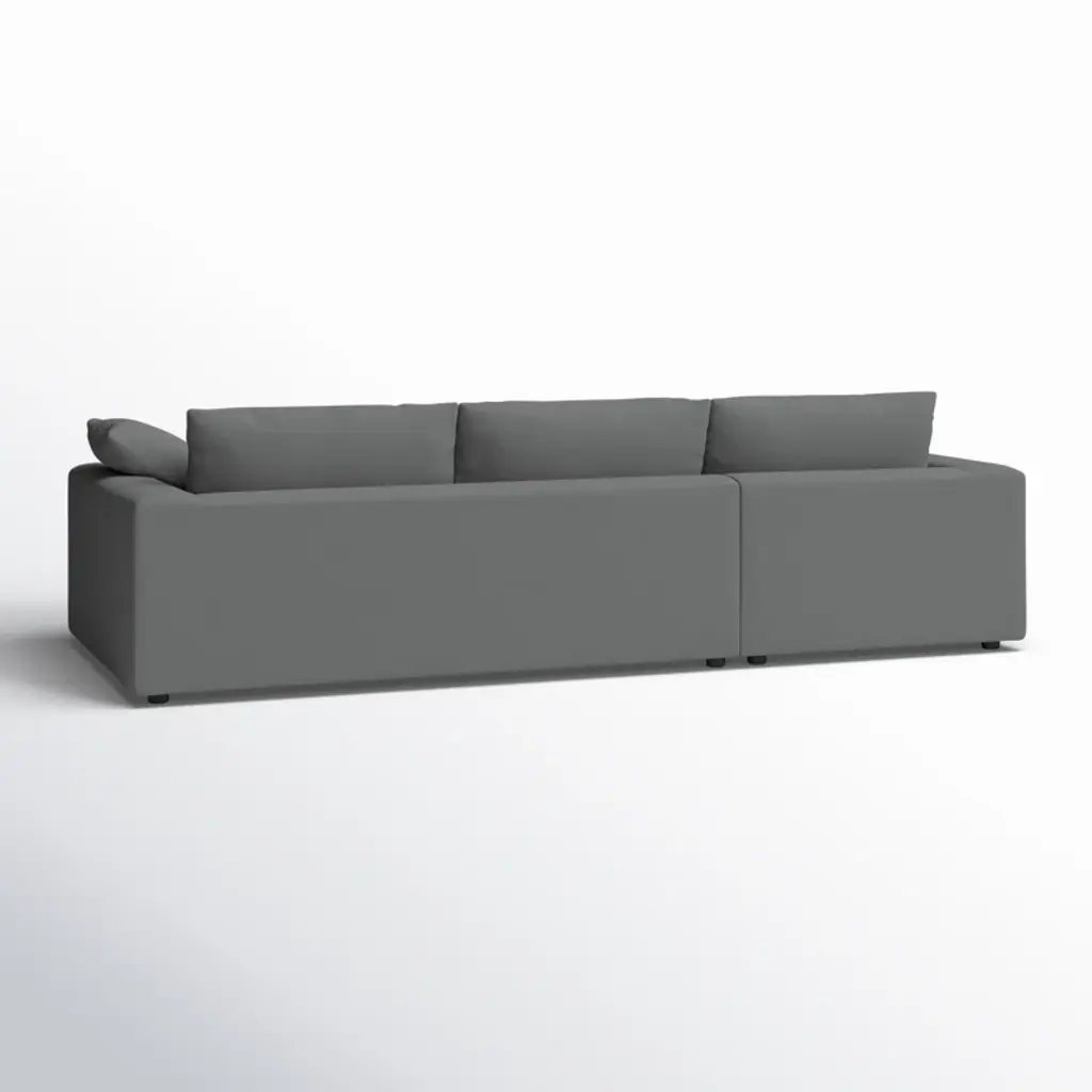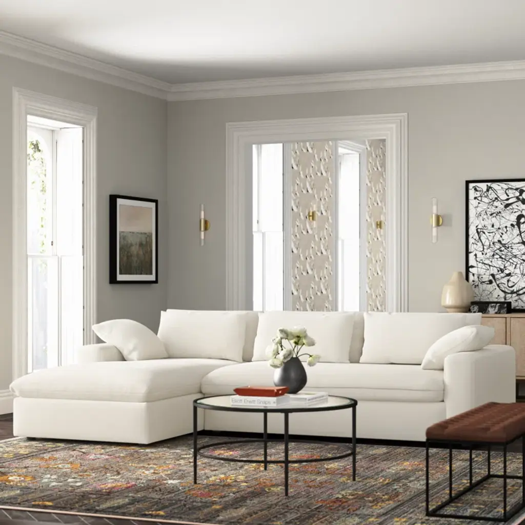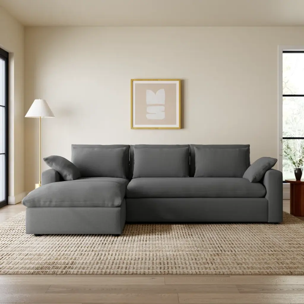 Inviting comfort paired with classic looks. Our sofa-and-chaise sectional transforms your living space with an L-shaped design and a vintage-inspired vibe. It features a streamlined silhouette with square arms and wooden block legs. Wrapped in upholstery, it is available in an array of colorways and fabric types to curate your signature style. A mix of foam and down padding over sinuous springs ensure exceptional support.
