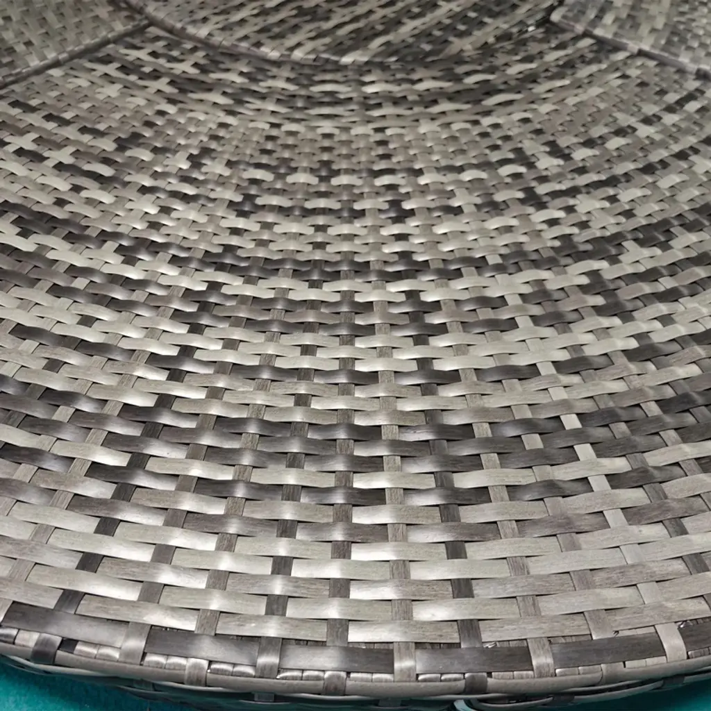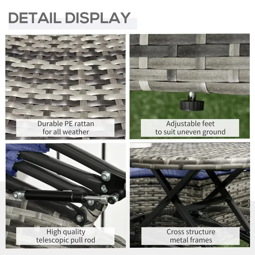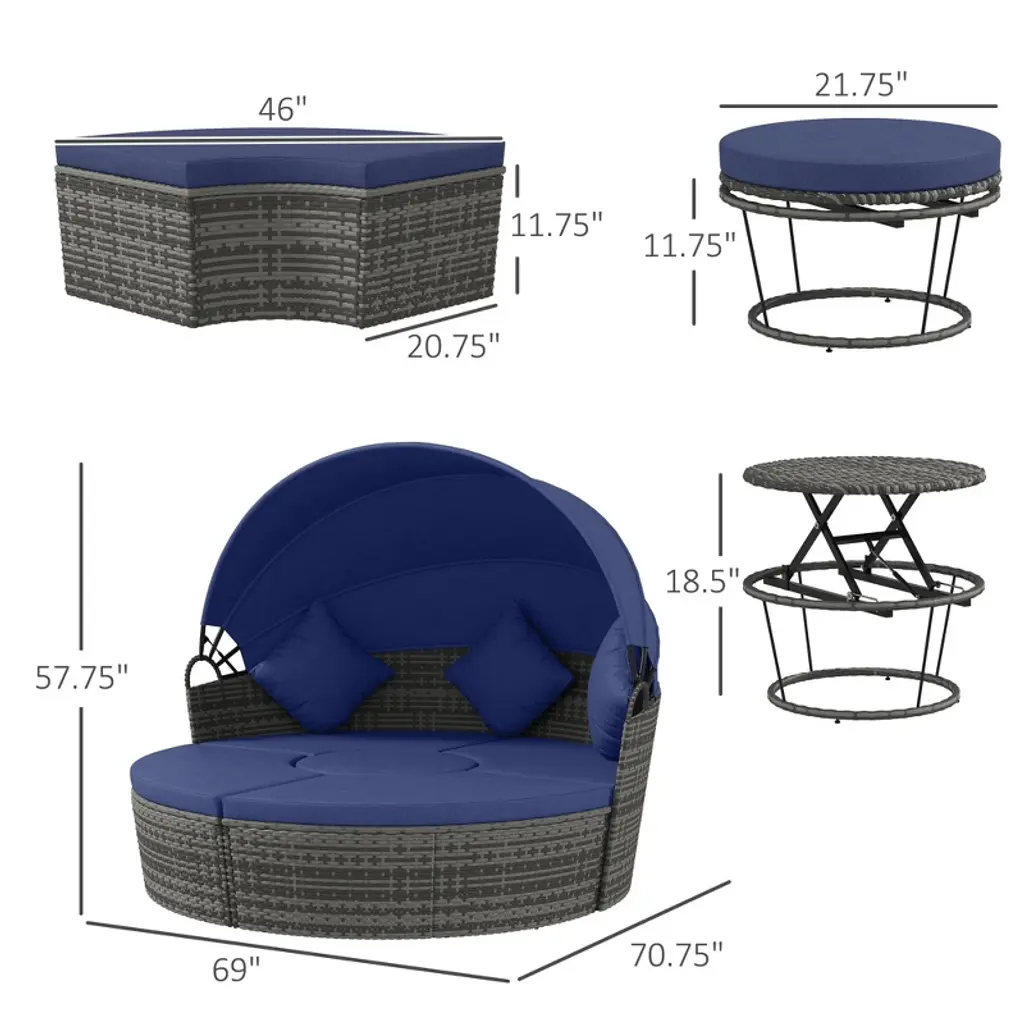 Resenkos 4 Pieces Round Rattan Daybed Furniture Set, Outdoor Sectional Furniture, Polyethylene Rattan, Blue