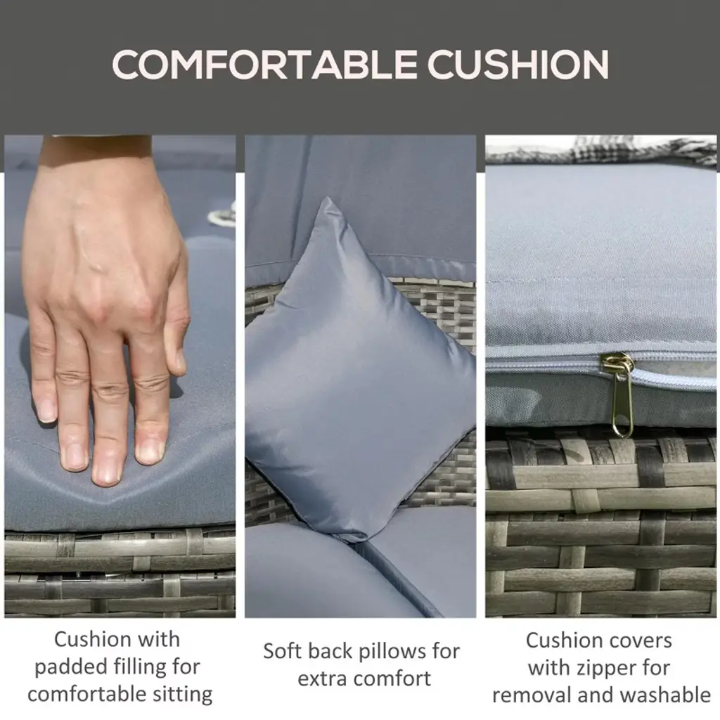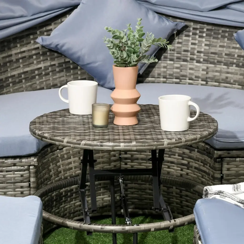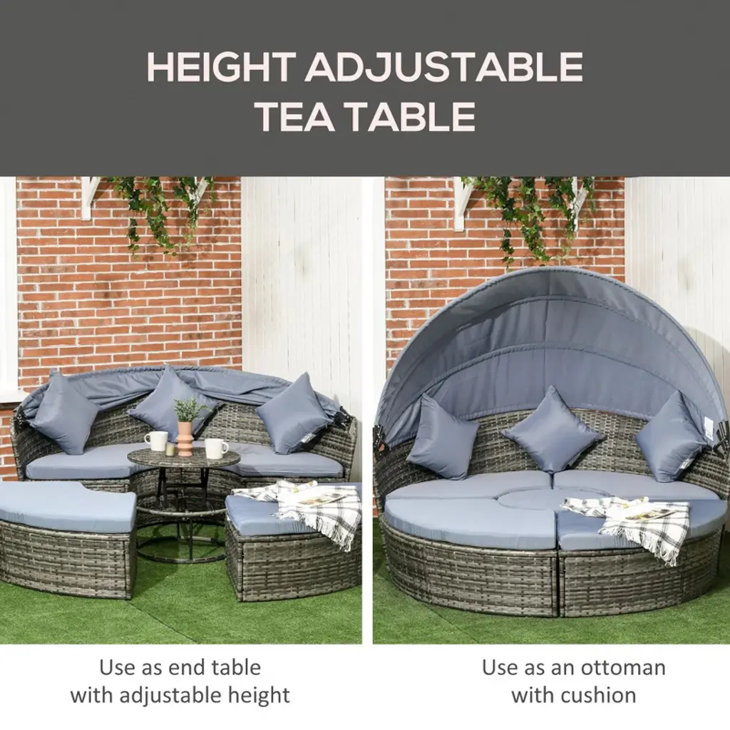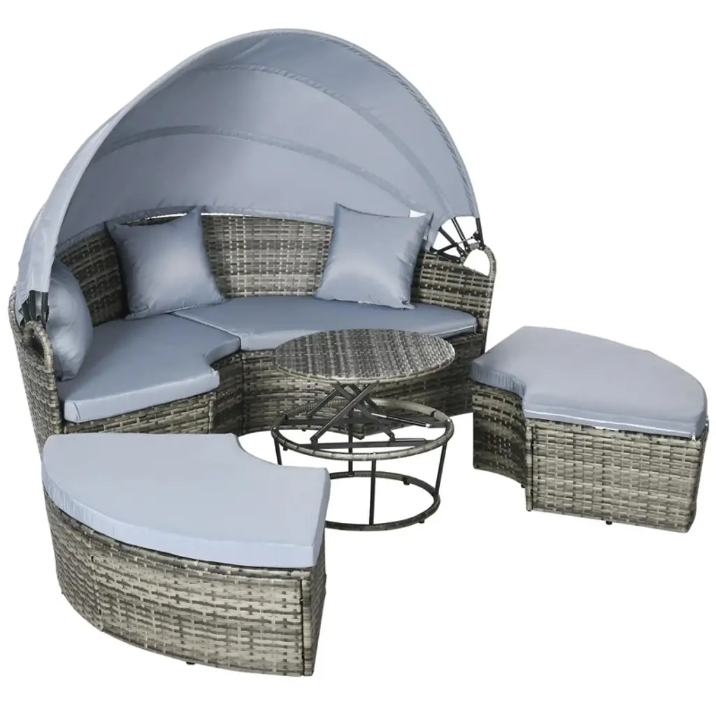 Resenkos 4 Pieces Round Rattan Daybed, Outdoor Sectional Furniture, Polyethylene Rattan, Light Gray