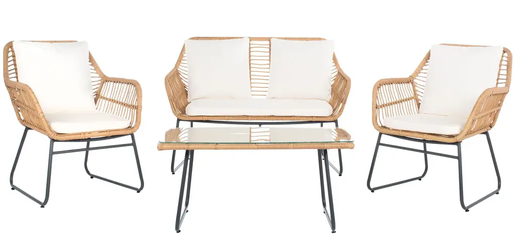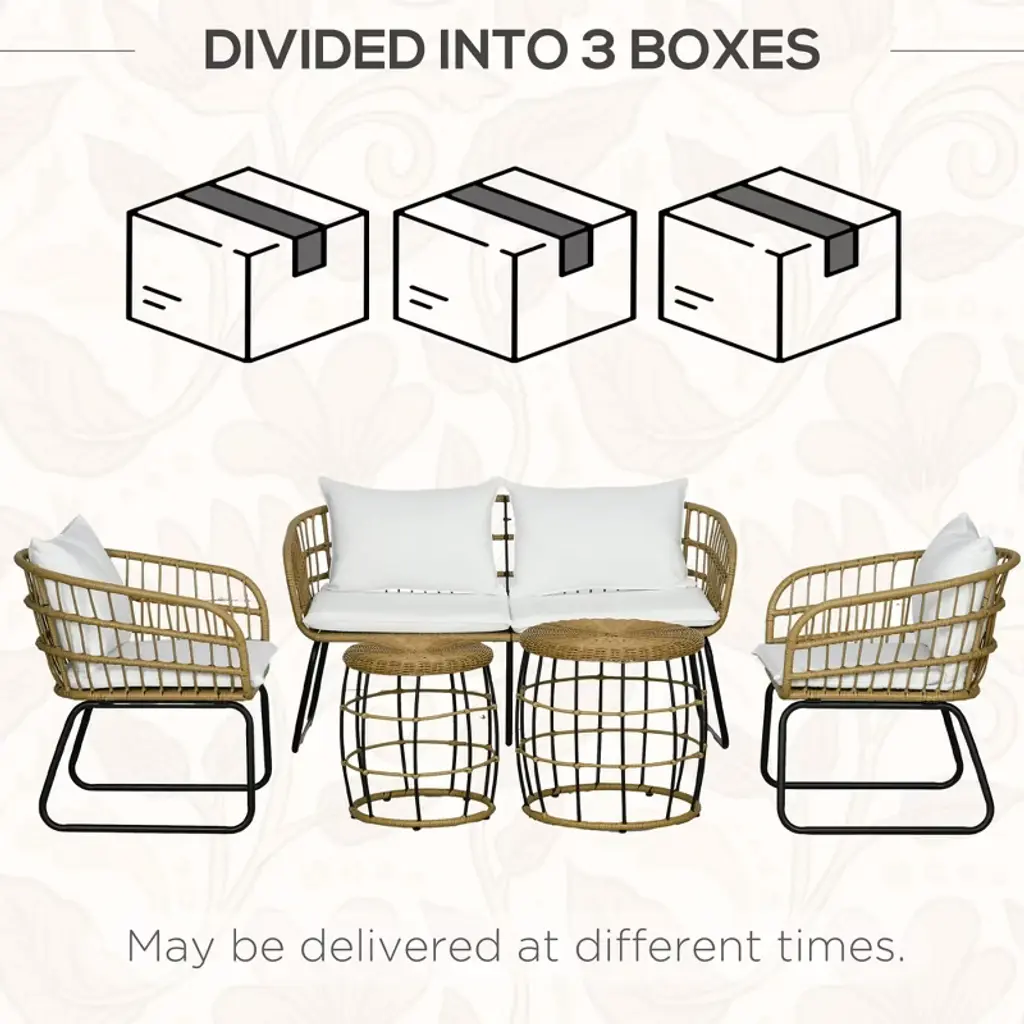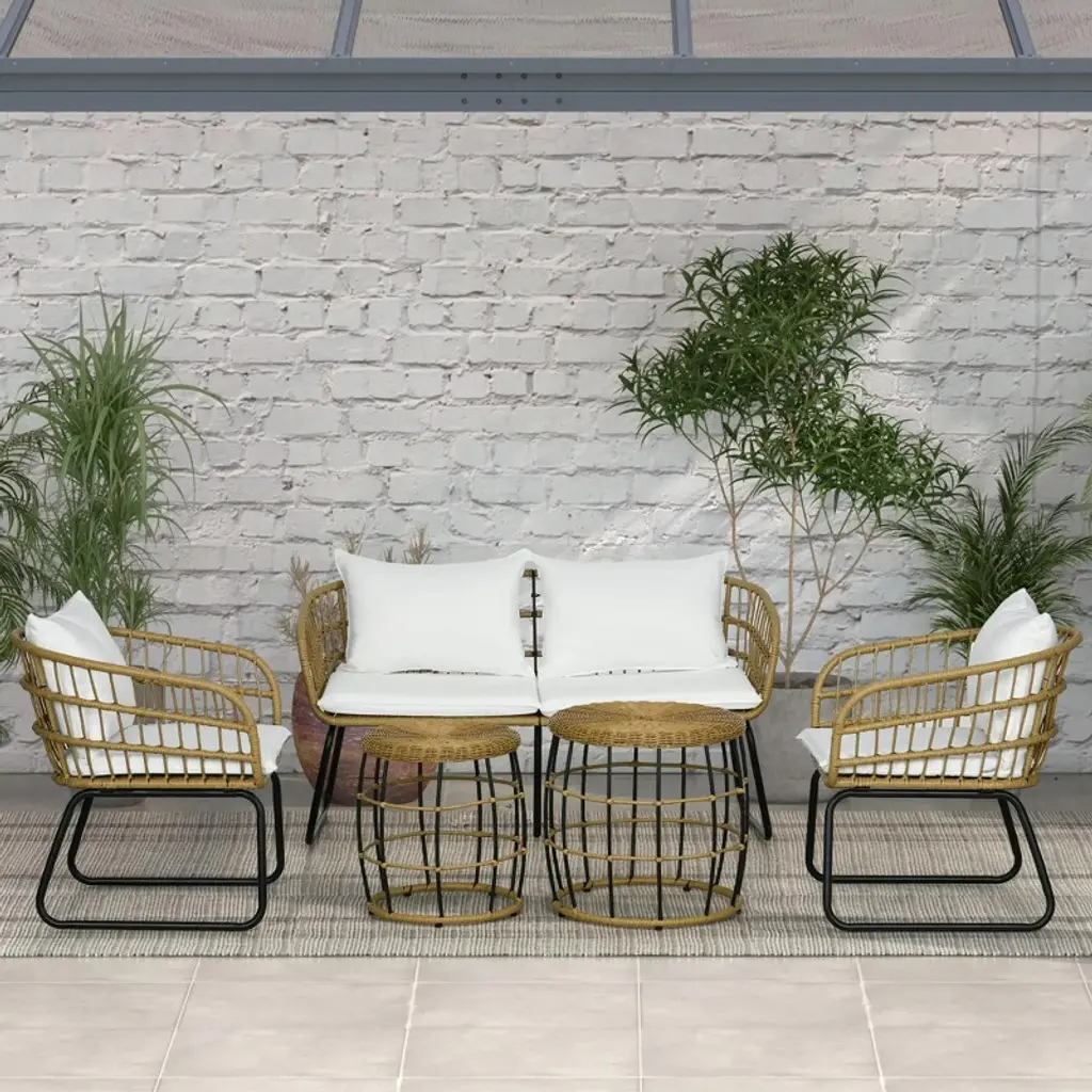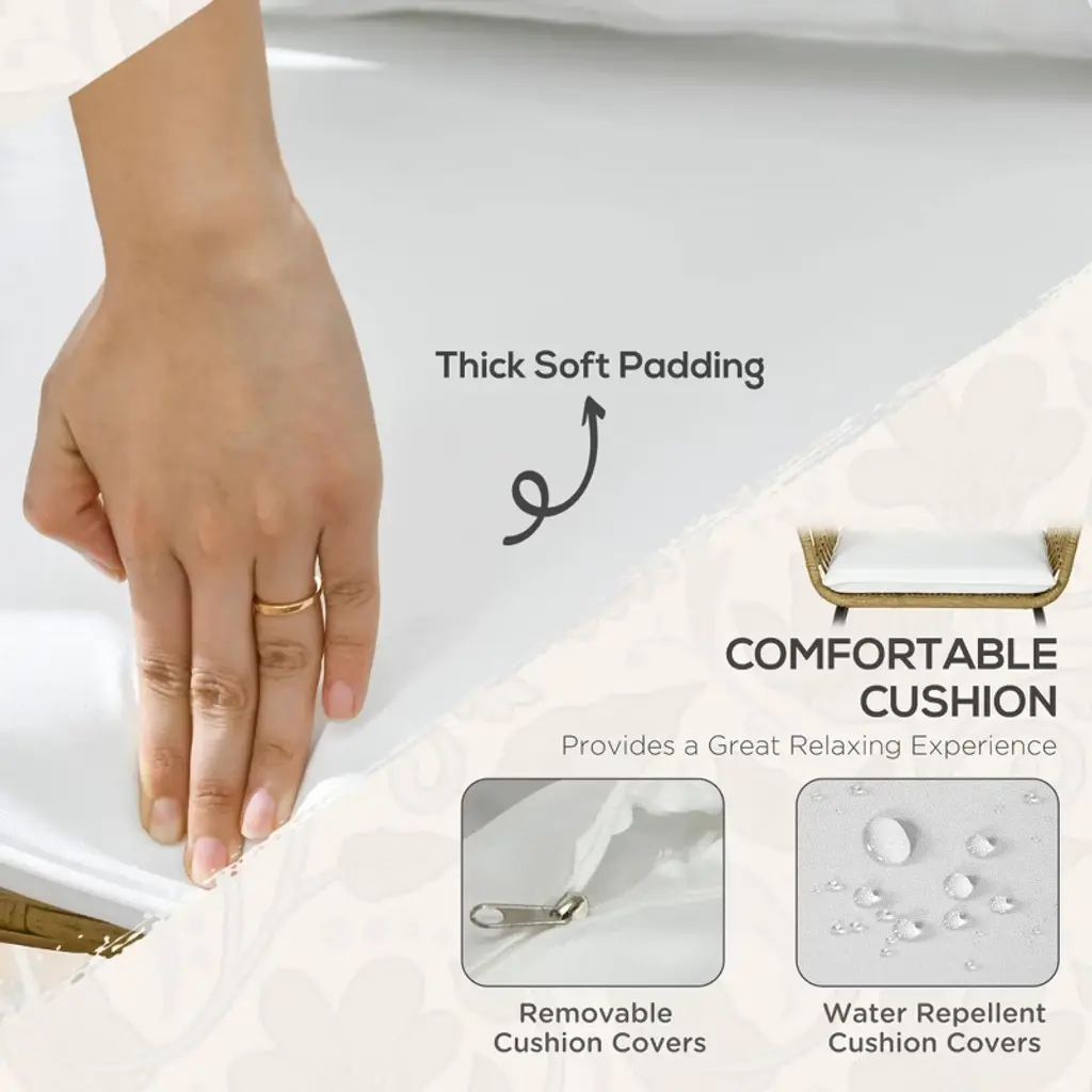Experience ultimate comfort with the Resenkos 5 Pieces PE Rattan Outdoor Furniture Set, featuring cushioned chairs, a loveseat sofa, and stackable coffee tables. This cream white set is perfect for your patio, deck, or garden, offering a stylish and durable solution for your outdoor relaxation needs. With its weather-resistant PE rattan construction, this furniture set is designed to withstand the elements, ensuring years of enjoyment. The plush cushions provide a cozy seating experience, while the stackable coffee tables offer both functionality and space-saving convenience. Transform your outdoor space into a serene retreat with this premium Resenkos outdoor furniture set, ideal for small to medium-sized spaces, perfect for gatherings, and suitable for all weather conditions. Embrace the beauty of nature with Resenkos – your go-to choice for high-quality outdoor living.