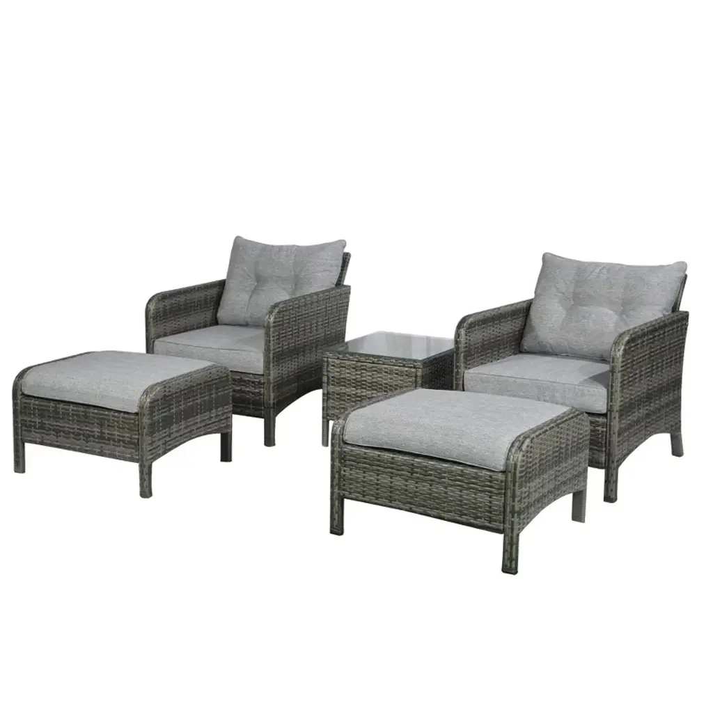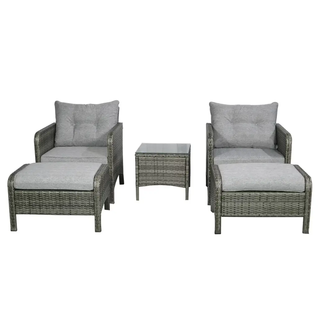 Resenkos 5 Pieces Rattan Wicker Lounge Chair Outdoor Patio Conversation Set, Outdoor Sectional Furniture, Pe Rattan, Gray