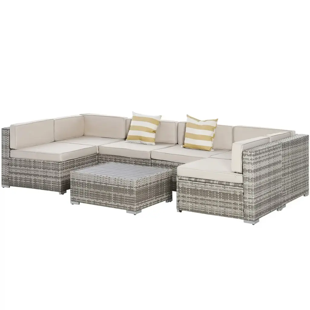 Resenkos 7-piece Rattan Sectional Set, Outdoor Sectional Furniture, Pe Rattan, Beige