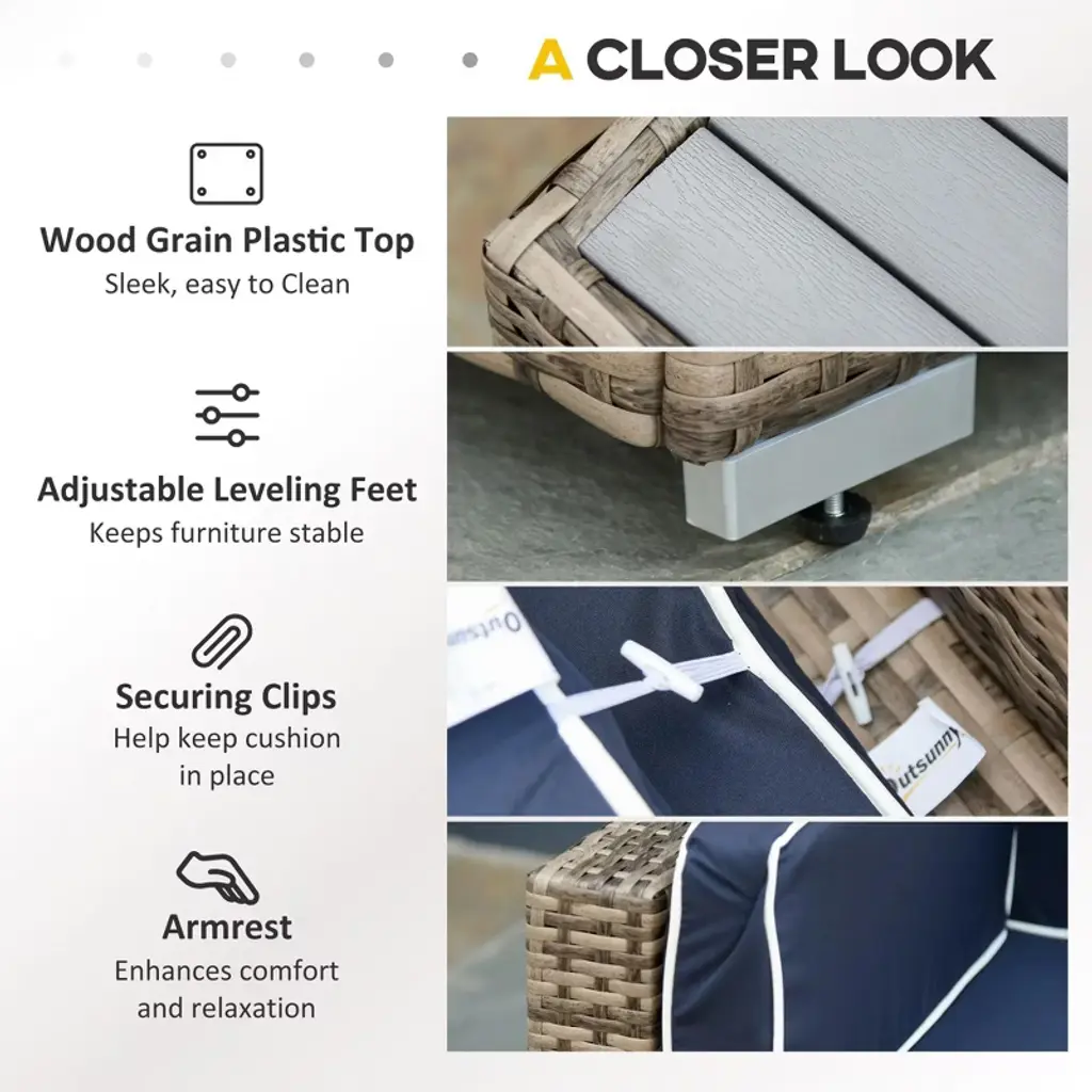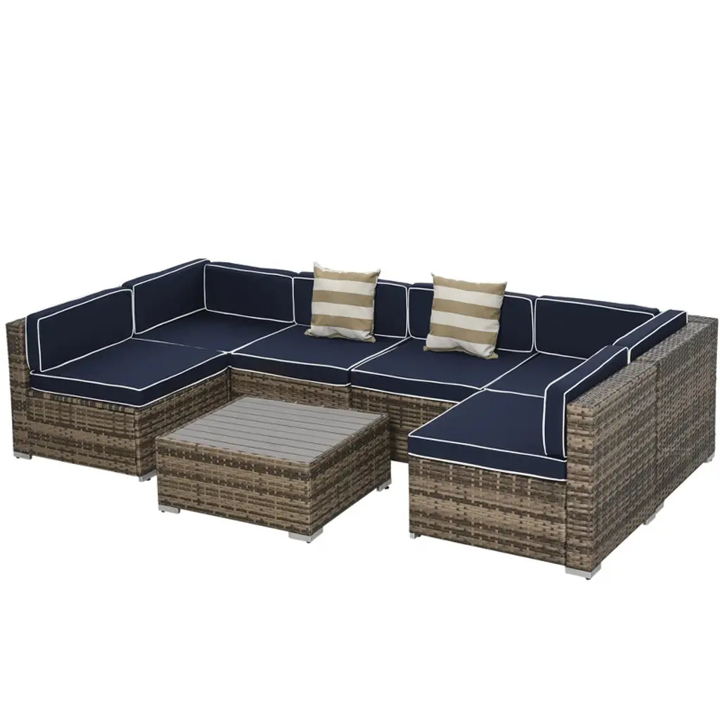 Experience ultimate comfort with the Resenkos 7-Piece Outdoor Wicker Patio Sofa Set, a modern rattan conversation furniture set that seamlessly blends style and functionality. This beige masterpiece includes plush cushions and a convenient tea table, perfect for relaxing and entertaining. Crafted from high-quality materials, this sofa set is designed to withstand the elements, ensuring years of enjoyment. Embrace the beauty of outdoor living with Resenkos's modern rattan patio furniture set, featuring a sleek design and durable construction. Ideal for small to medium-sized patios, decks, or balconies, this set is a must-have for anyone seeking a cozy outdoor retreat. Transform your outdoor space into a luxurious oasis with the Resenkos 7-Piece Outdoor Wicker Patio Sofa Set, offering exceptional comfort, stylish aesthetics, and practicality.