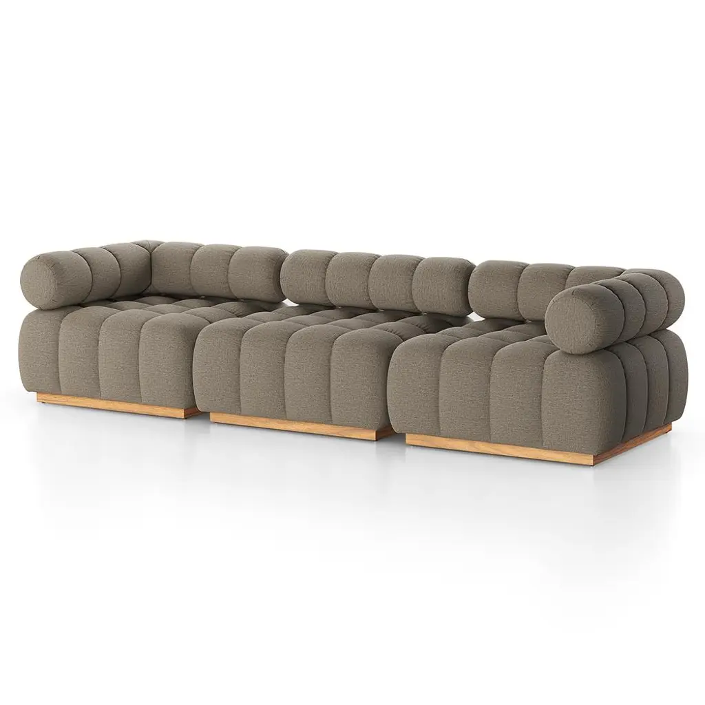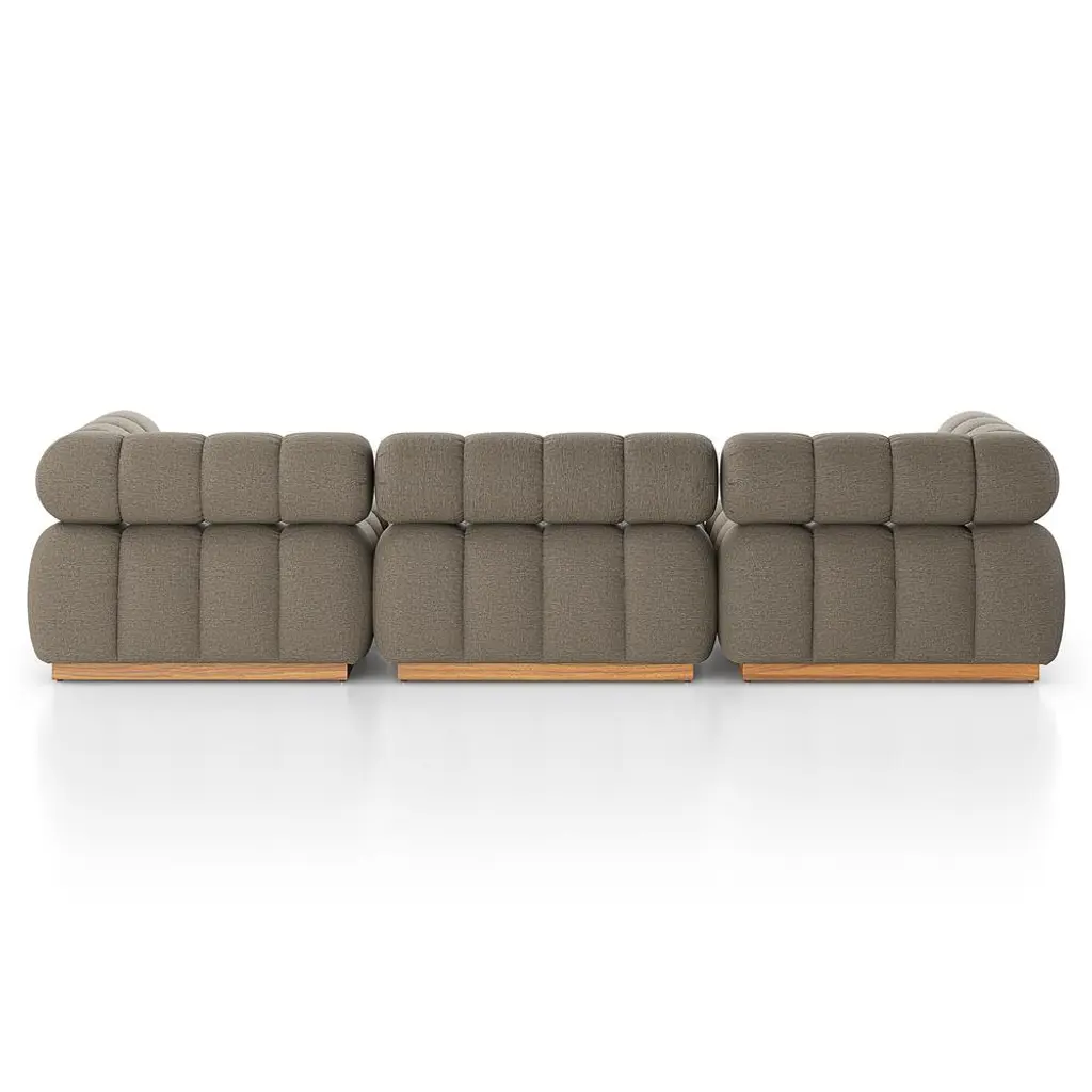 Rhey Mid Century Modern Taupe Tufted 3 Piece Outdoor Sectional - 110"