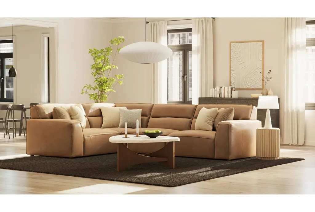 Rhone 122" Light Brown Beige Leather 4 Piece Modular L-Shaped Sectional | Reversible